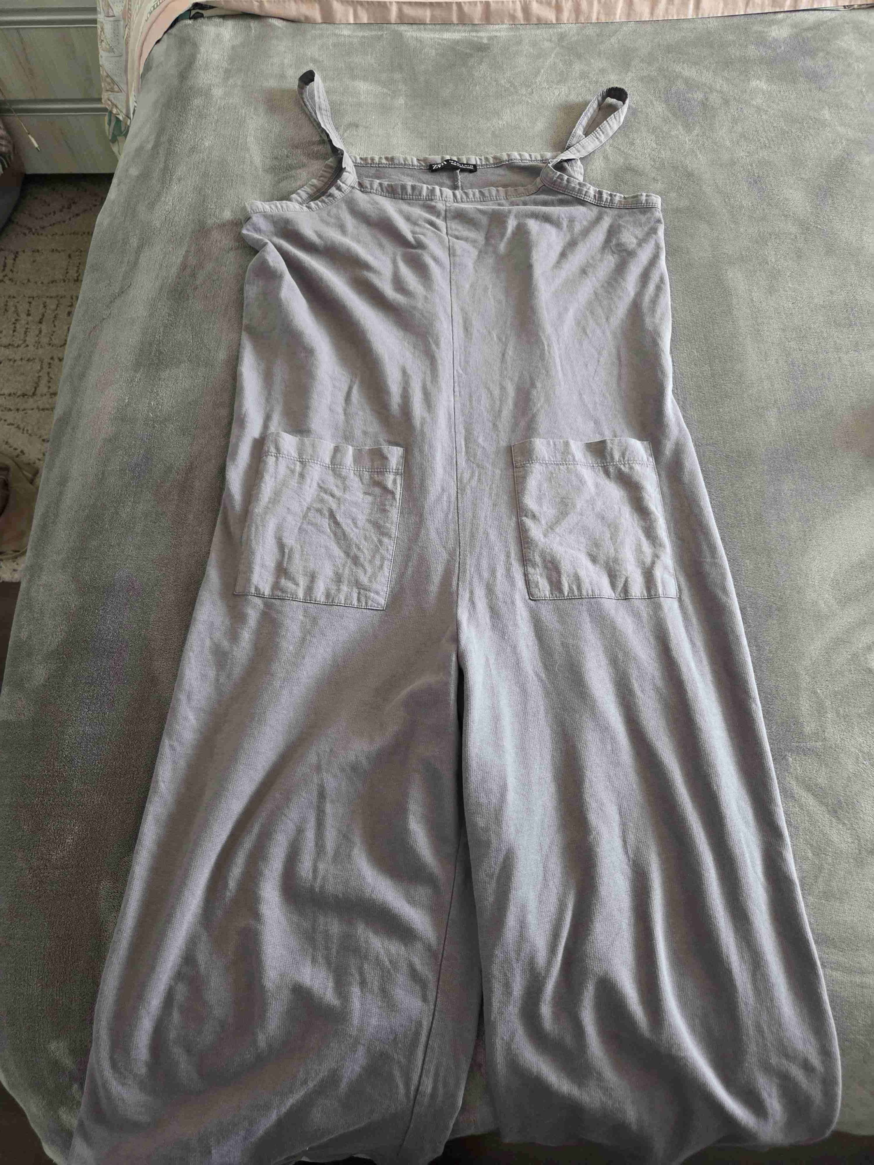 Overall gris casual con tirantes y bolsillos frontales. Perfecto para un estilo relajado. En buen estado general.zara