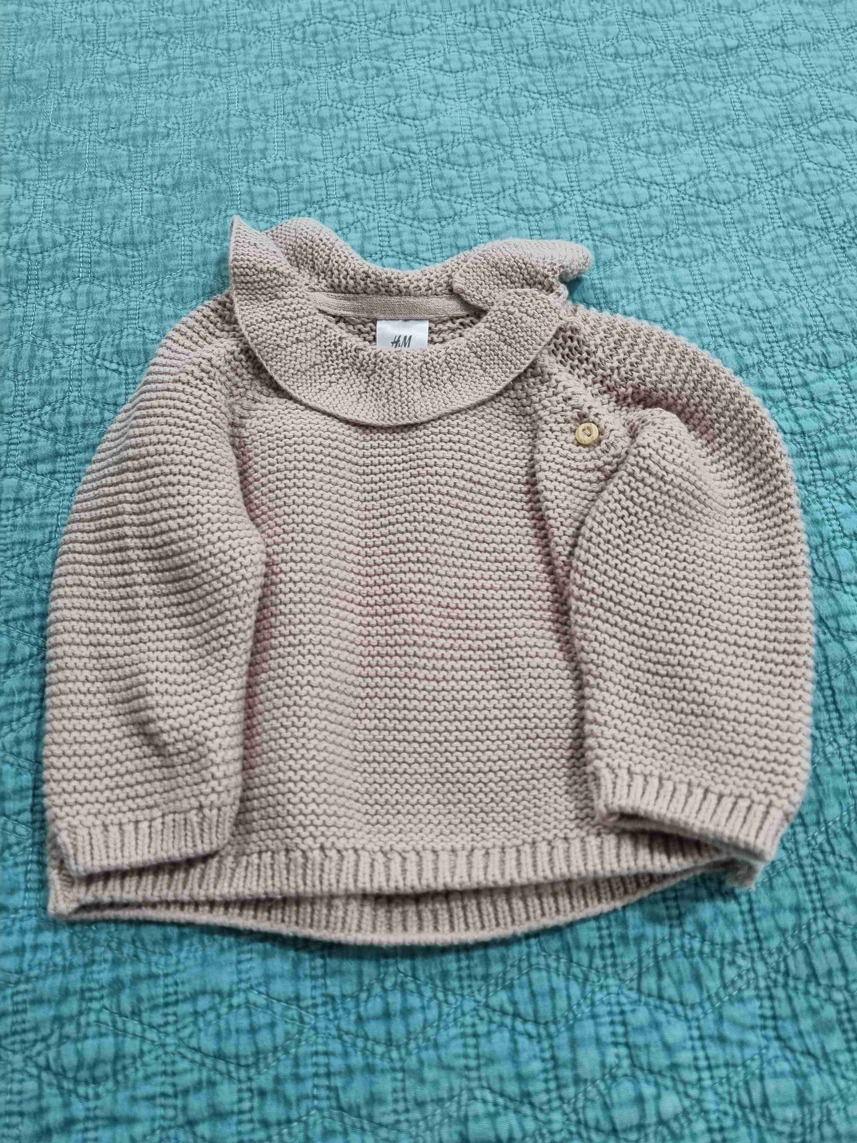 Suéter de lana para bebé, color beige clásico, perfecto para días fríos. Botón decorativo en el hombro. 1-2 meses