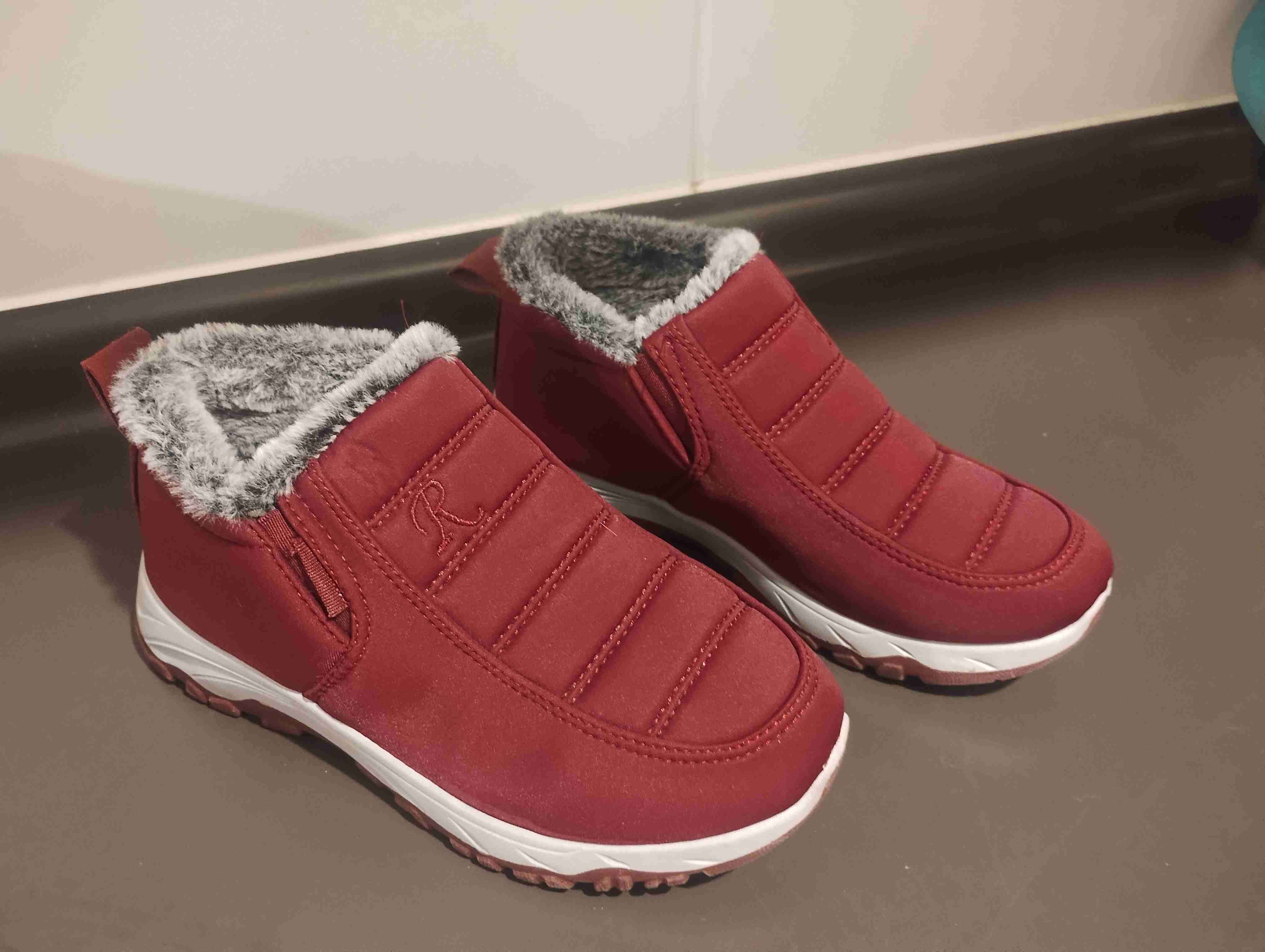Botines rojos de invierno con forro interior de felpa y suela antideslizante. Cómodos y cálidos para el clima frío.