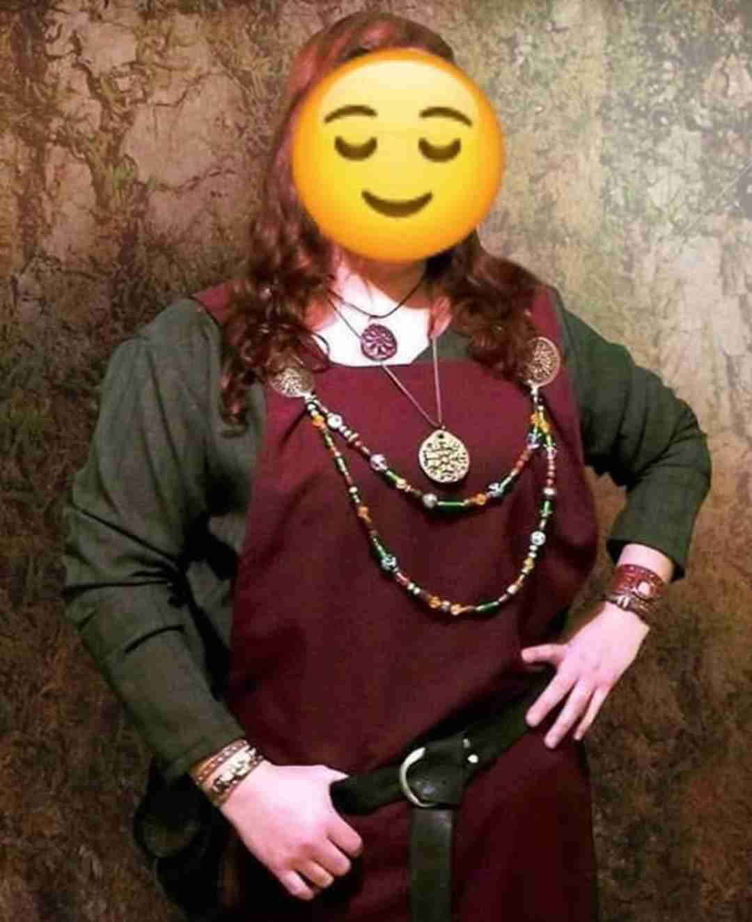 Vestido estilo medieval (estilo vikingo) en color borgoña con detalles de joyería. Ideal para eventos temáticos. Talla XL / XXL Número de zapatos 40 el vestido llega hasta el tobillo. Incluye los accesorios de la segunda fotografía.