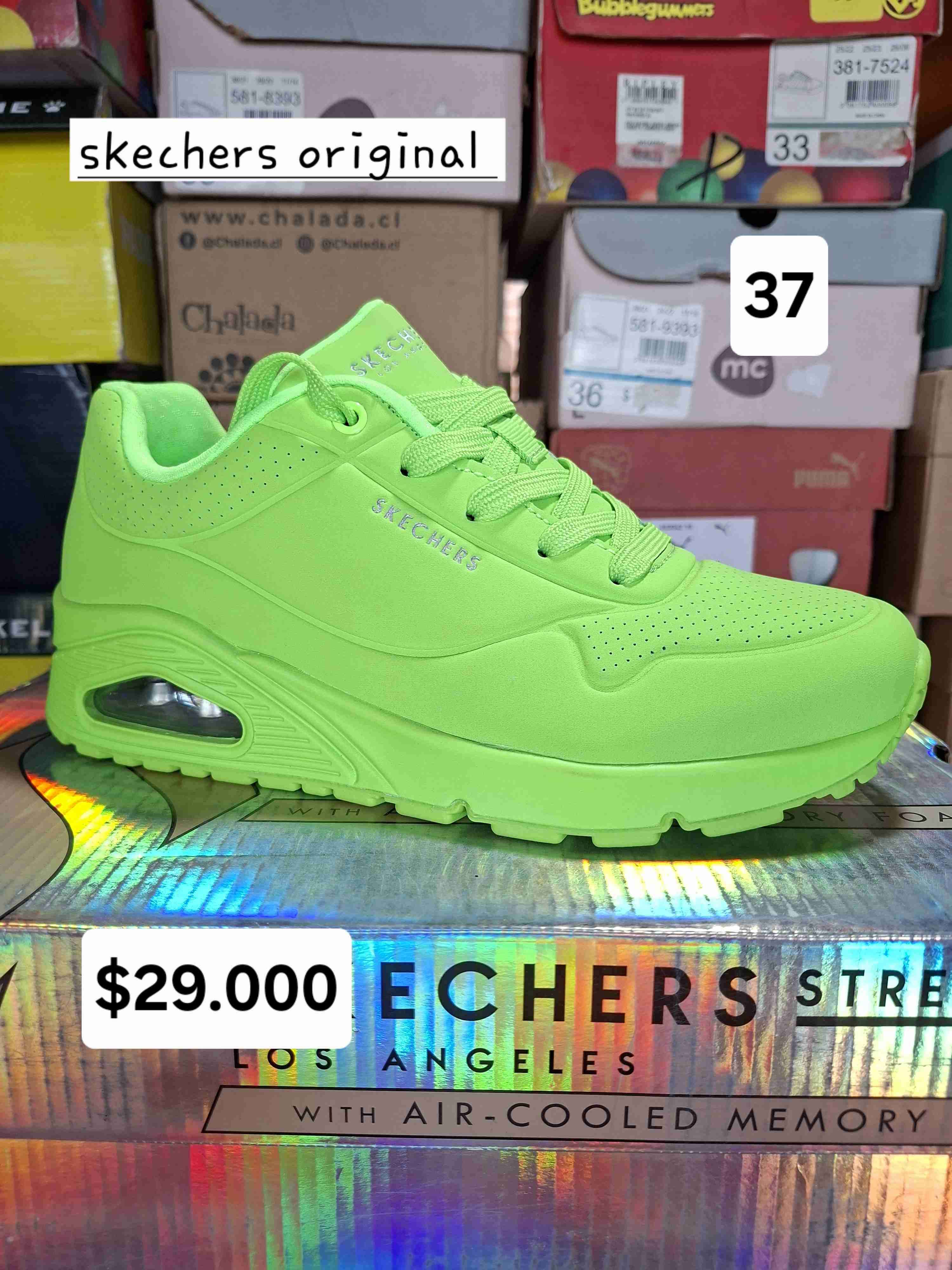 Zapatillas Skechers de color verde brillante, talla 37. Ideales para un look llamativo y cómodo. Nuevo