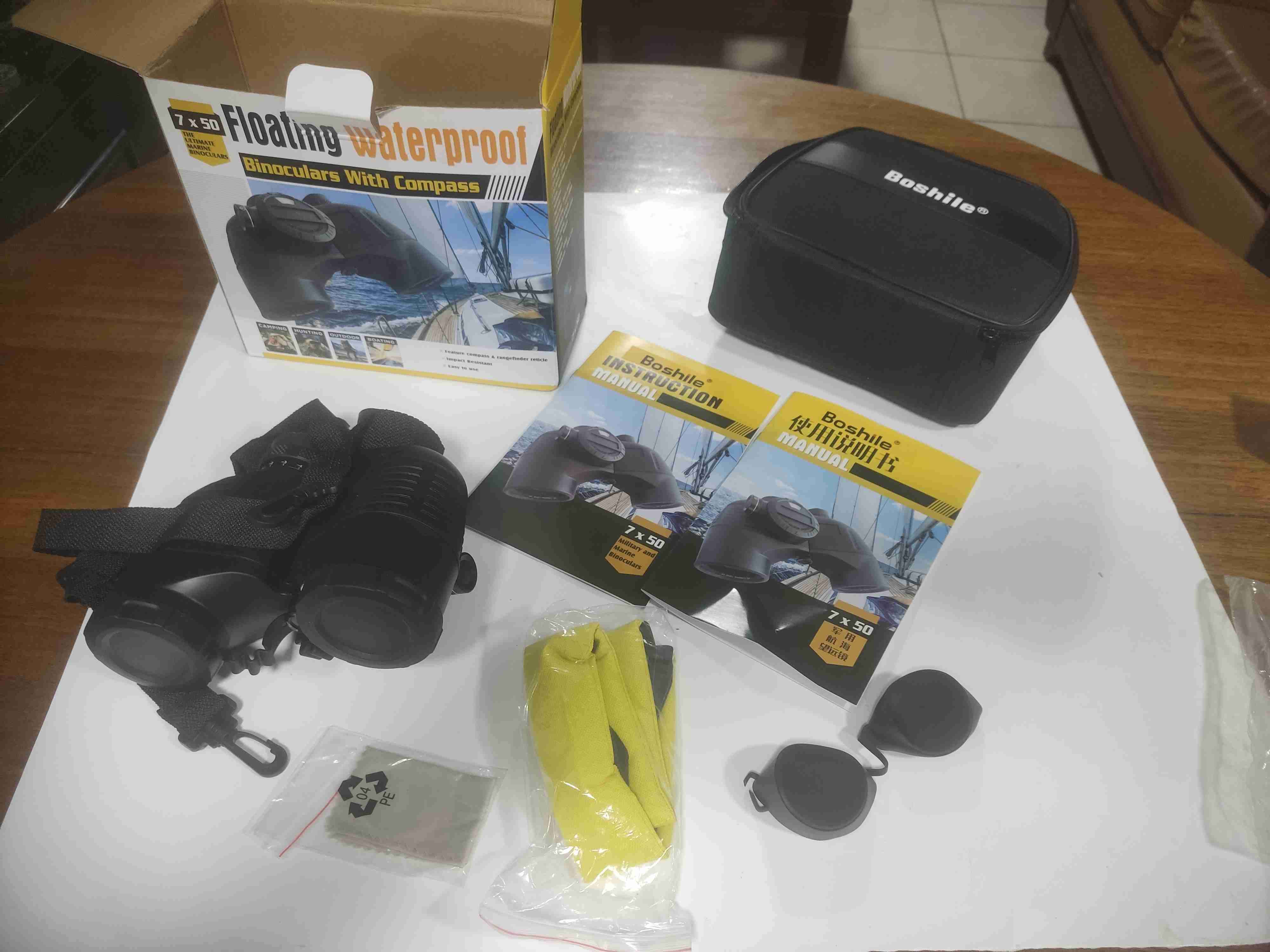 Binoculares 7x50 impermeables y flotantes con brújula integrada. Ideal para actividades náuticas.