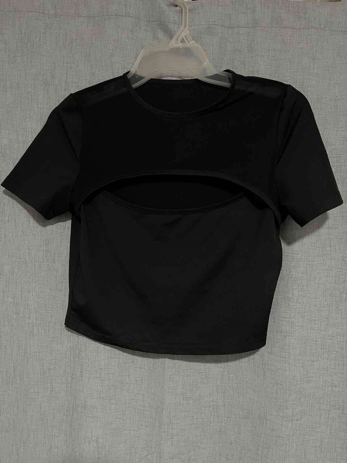 Polera negra con diseño moderno de abertura en el pecho. Ideal para un estilo casual. En buen estado.
