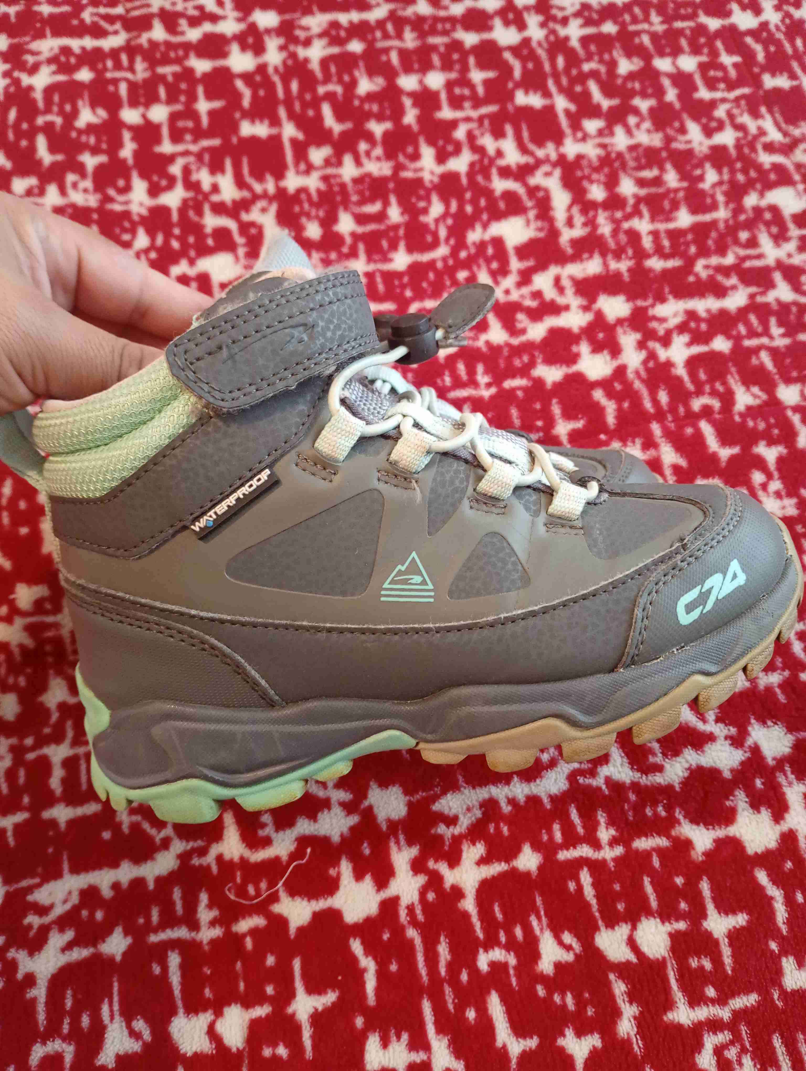 Botines grises con verde para niñas, ideales para aventuras al aire libre. Resistentes e impermeables al agua.. talla 29