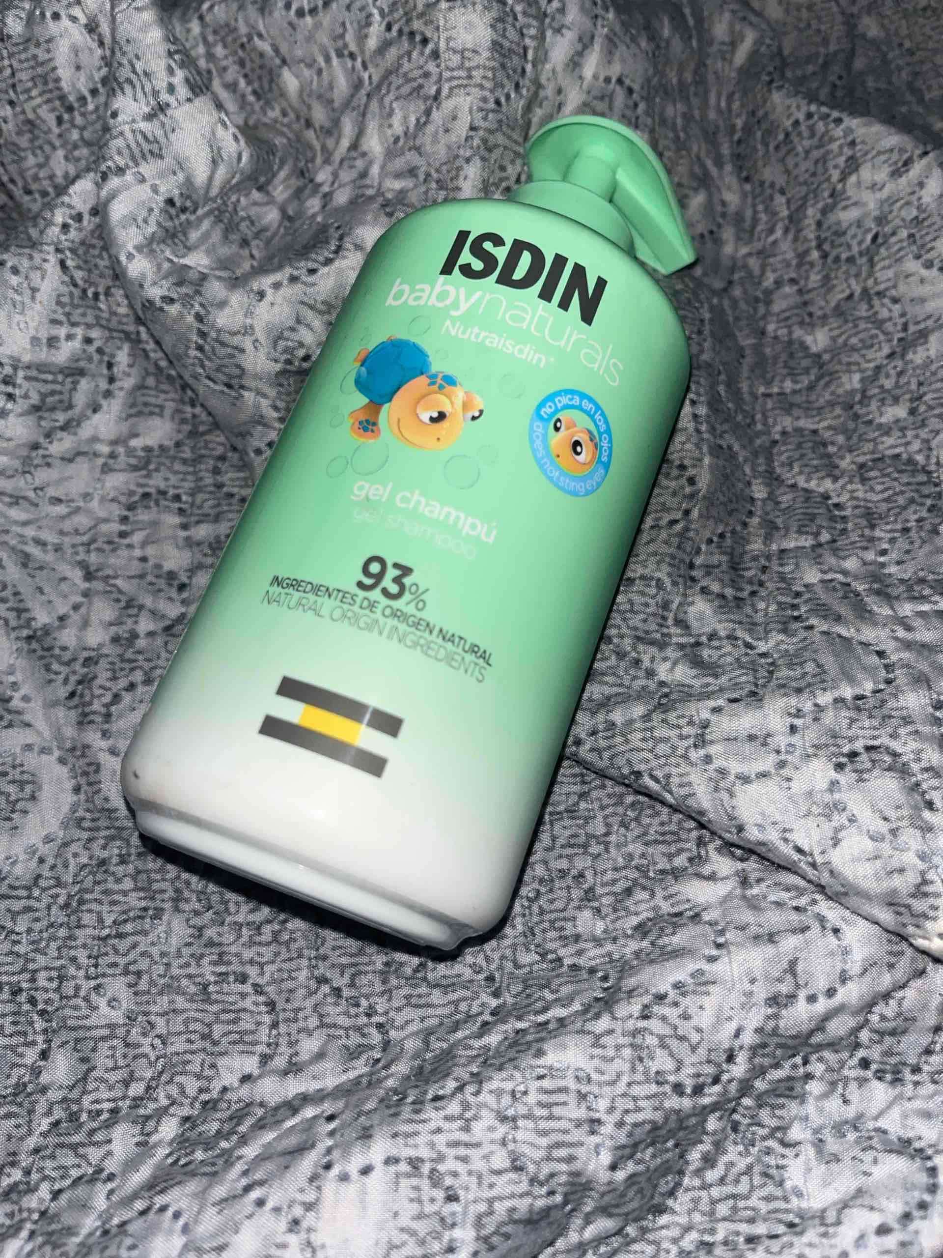 Gel champú suave para bebé de la línea ISDIN, ideal para uso diario. Nueva botella de 750 ml. Ingredientes de origen natural. 1 uso