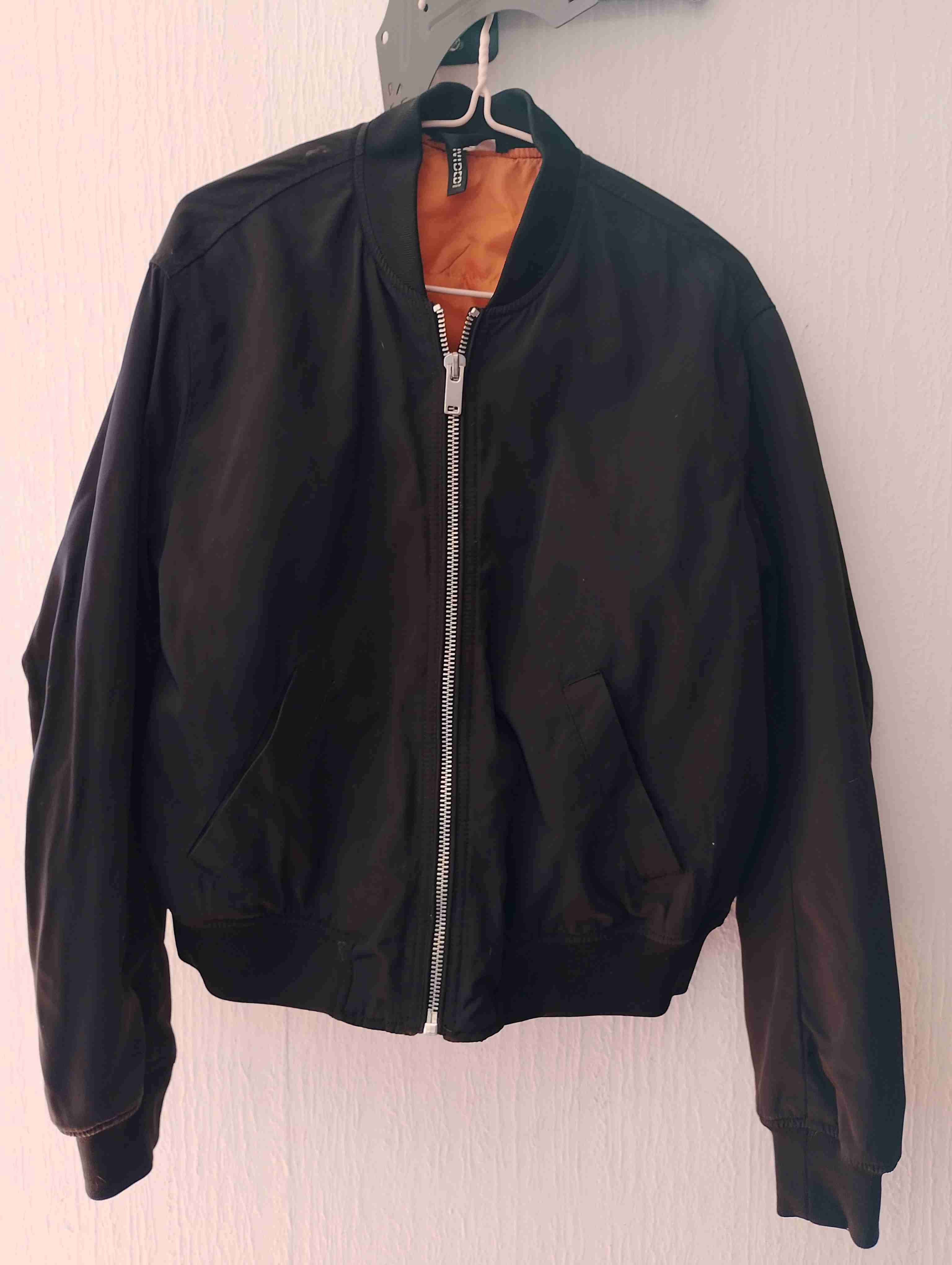 Chaqueta estilo bomber negra, ideal para días frescos. En buen estado, cómoda y versátil.
