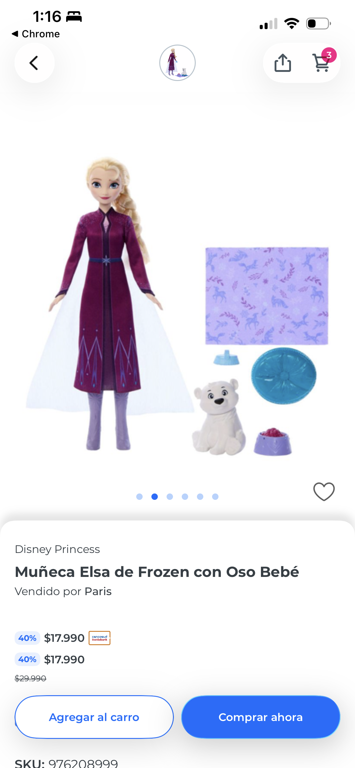Muñeca Elsa de la película Frozen, incluye oso bebé y accesorios. Ideal para fanáticos de Disney. Este Perfecto estado, llegó repetida al cumpleaños de mi hija.