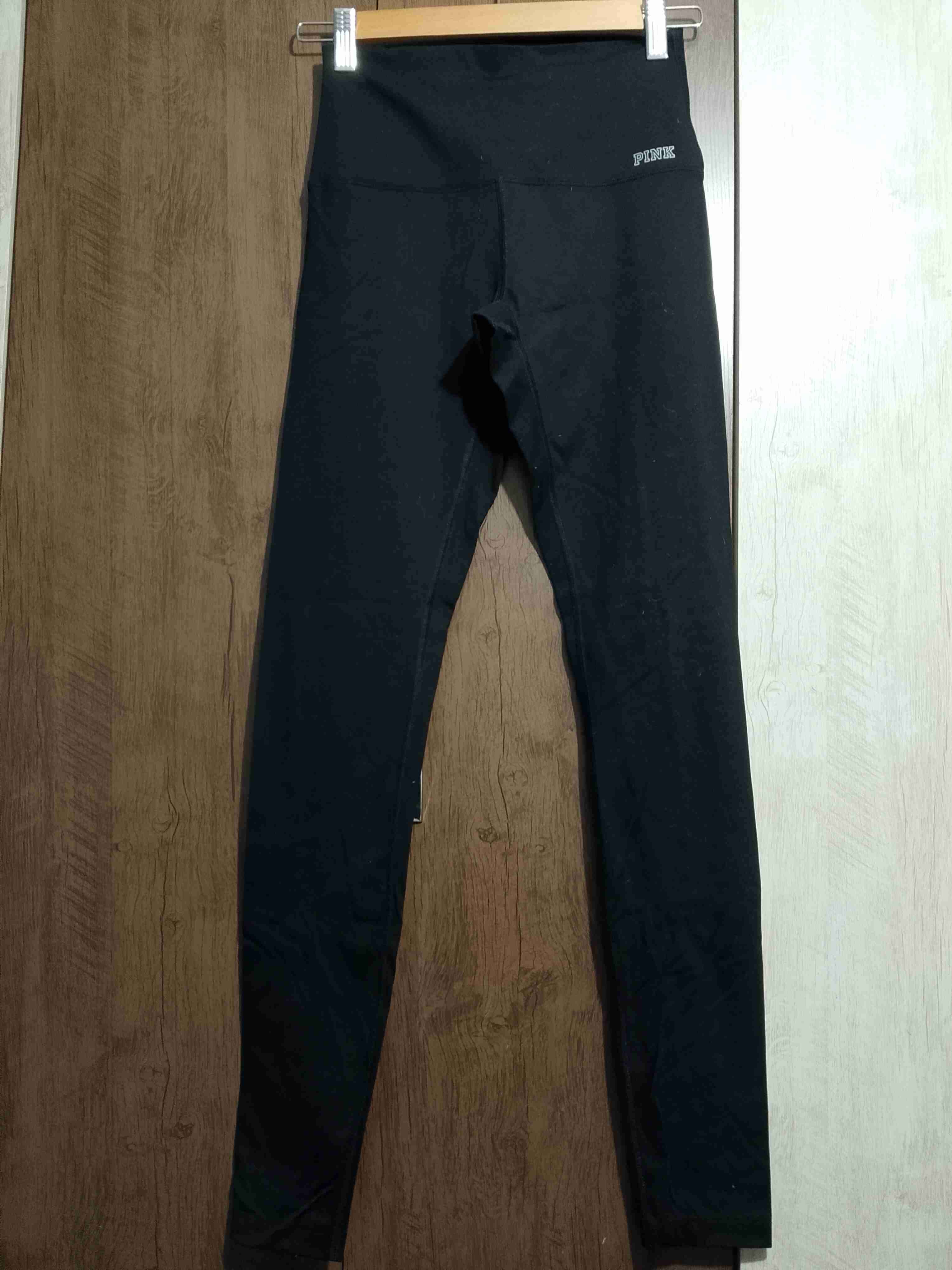 Leggings negros ajustados con logo PINK. En buen estado, perfectos para hacer deporte o un look casual.