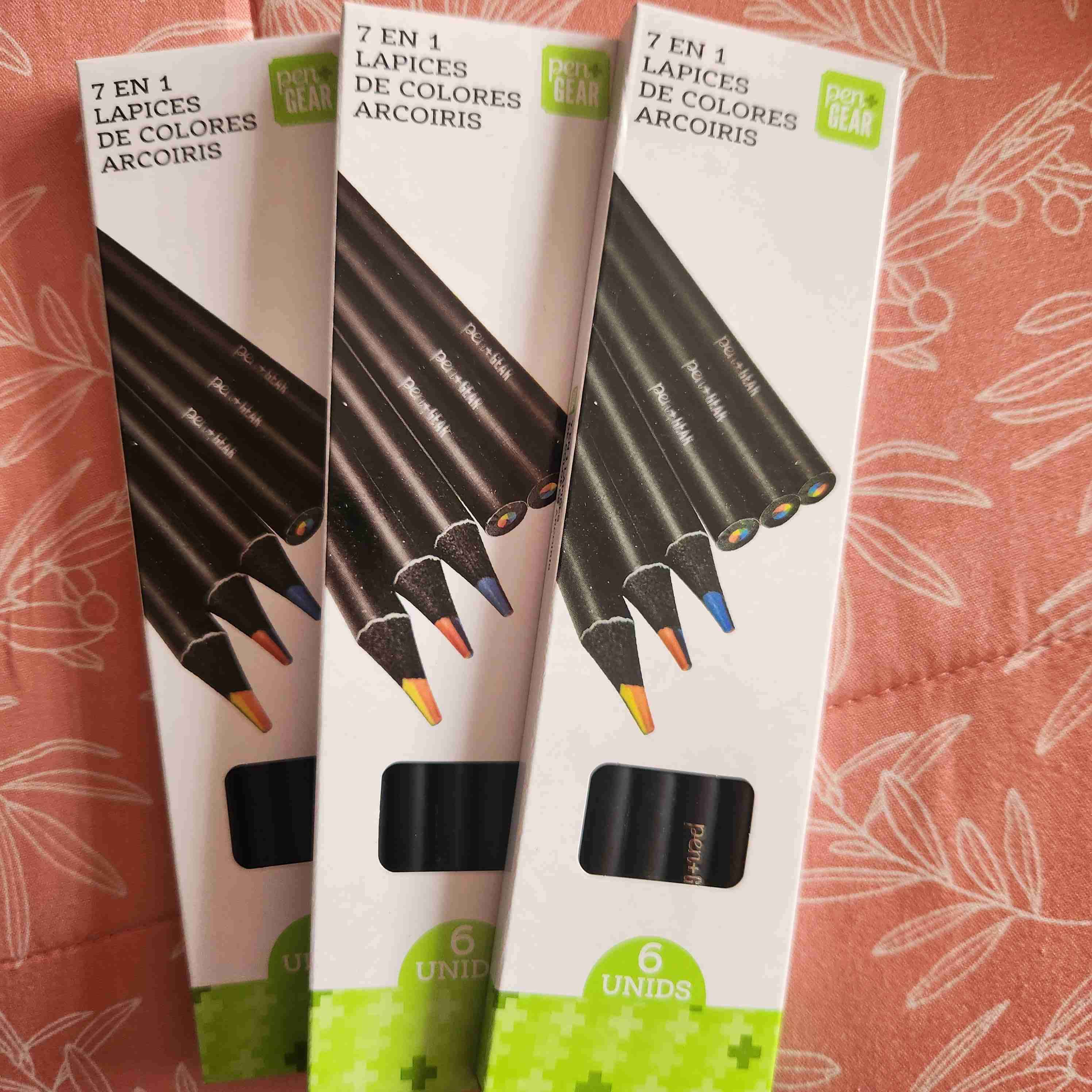 Paquete de lápices de colores arcoiris 7 en 1. Lapices colores neon, 8 unidades. Crayones colores neon, 6 unidades. Crayones colores metálicos, 5 unidades. Crayones Lavables, 16 unidades. Crayones especiales para usar en superficies húmedas. 4 unidades