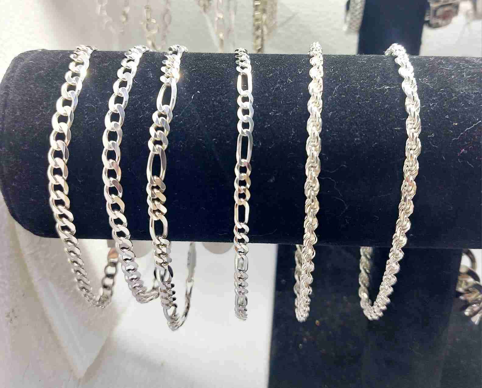 Elegantes pulseras de cadena en color plateado. Ideales para cualquier ocasión y estilo. Buen estado general, con brillo destacado.