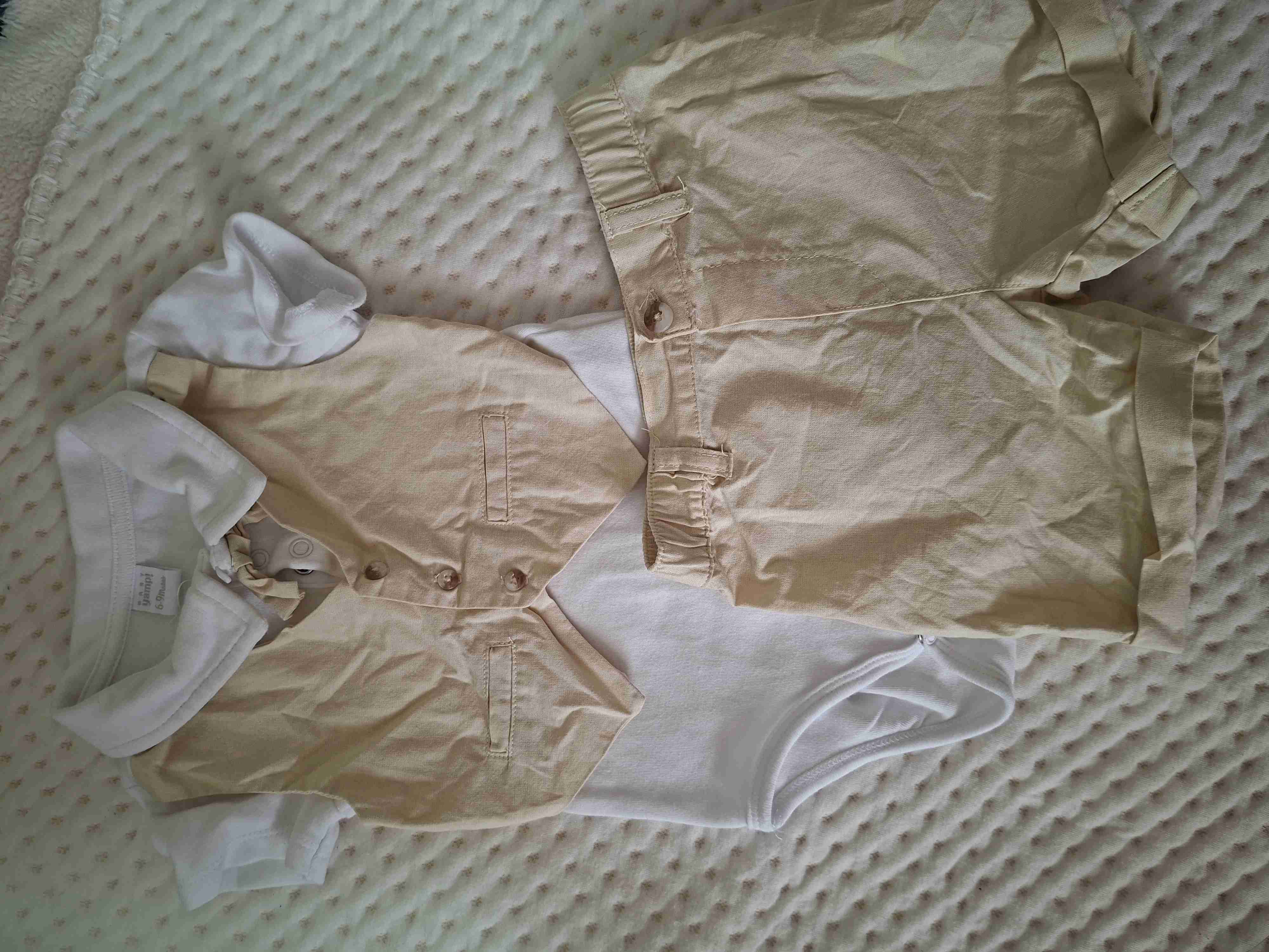 Conjunto de bebé elegante en color beige y blanco. Ideal para eventos especiales. En buen estado. Talla 9 meses