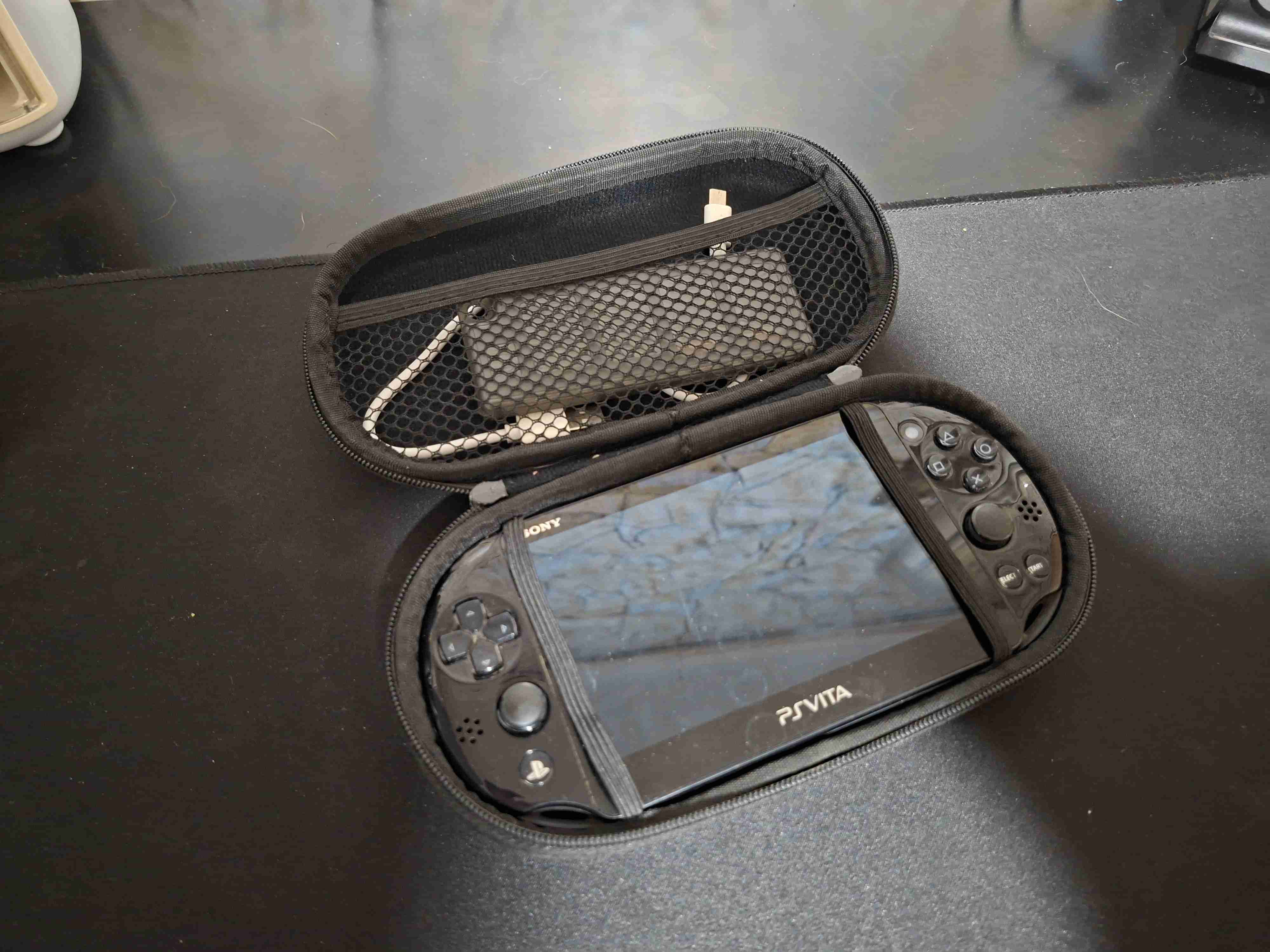 Consola portátil PS Vita en buen estado, incluye estuche de protección y tres juegos.