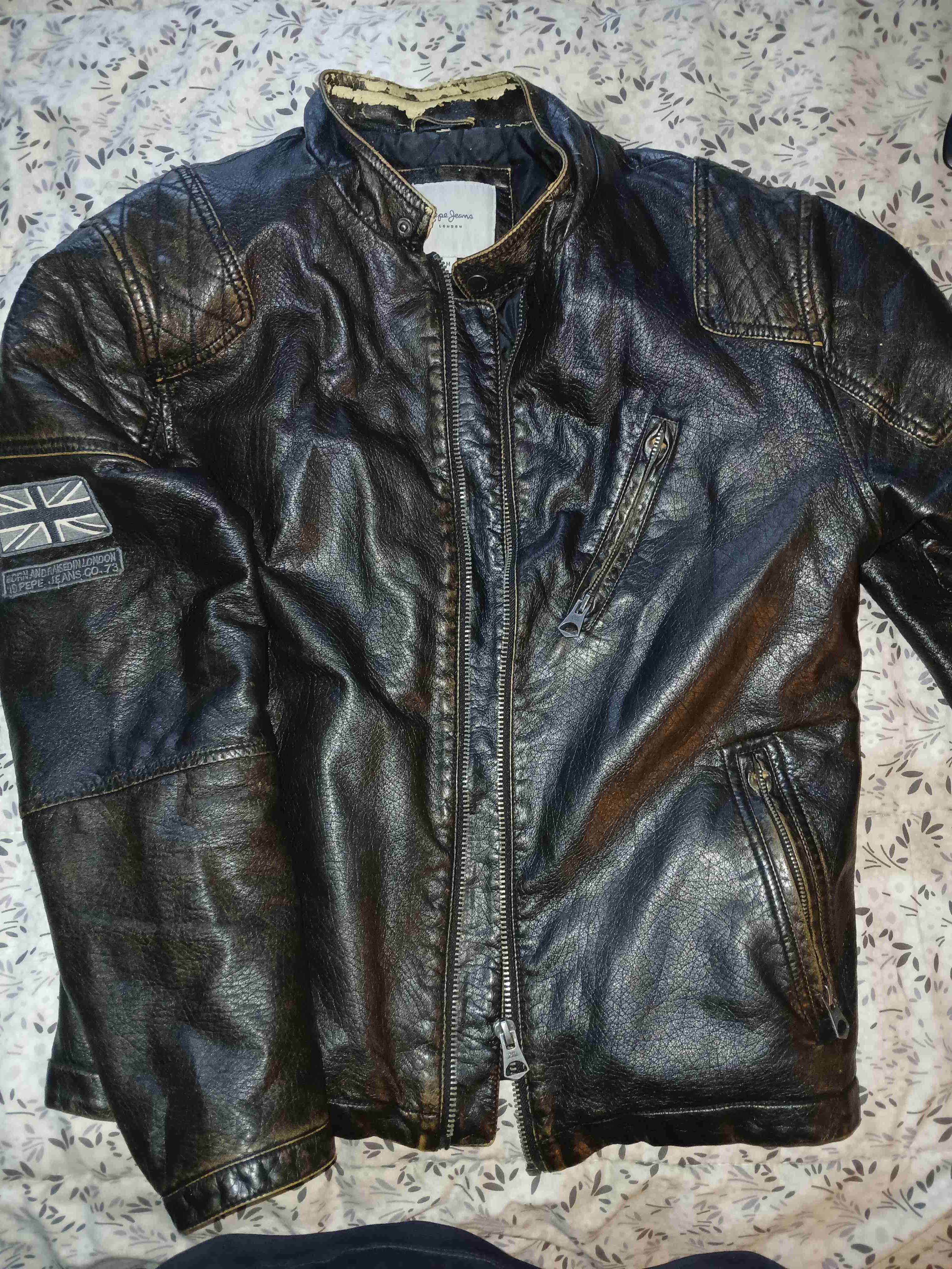Chaqueta de cuero negra con diseño estilo biker. En buen estado, ideal para uso casual o motociclistas.