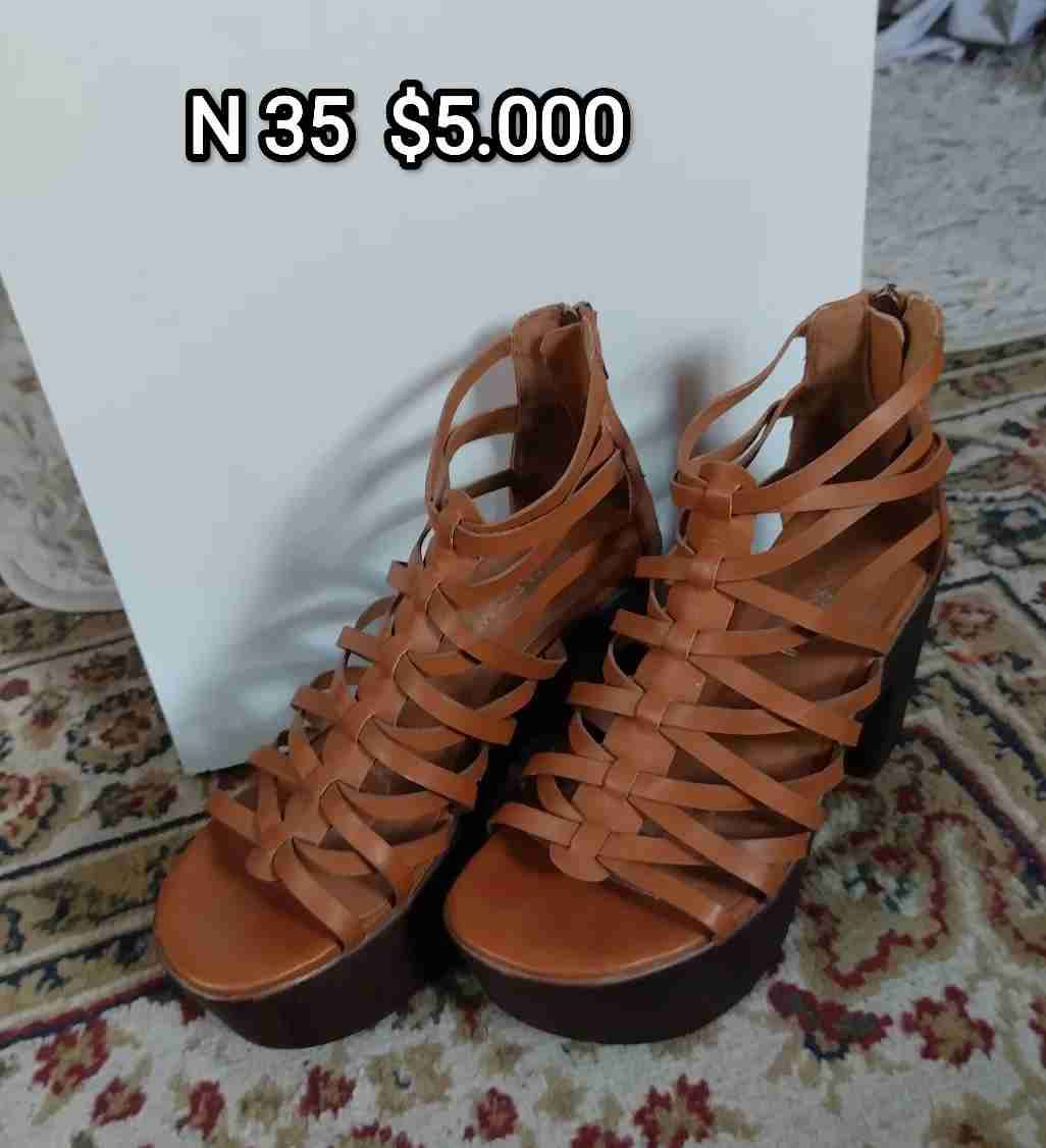 Sandalias de tiras color café, número 35. Ideales para ocasiones especiales.