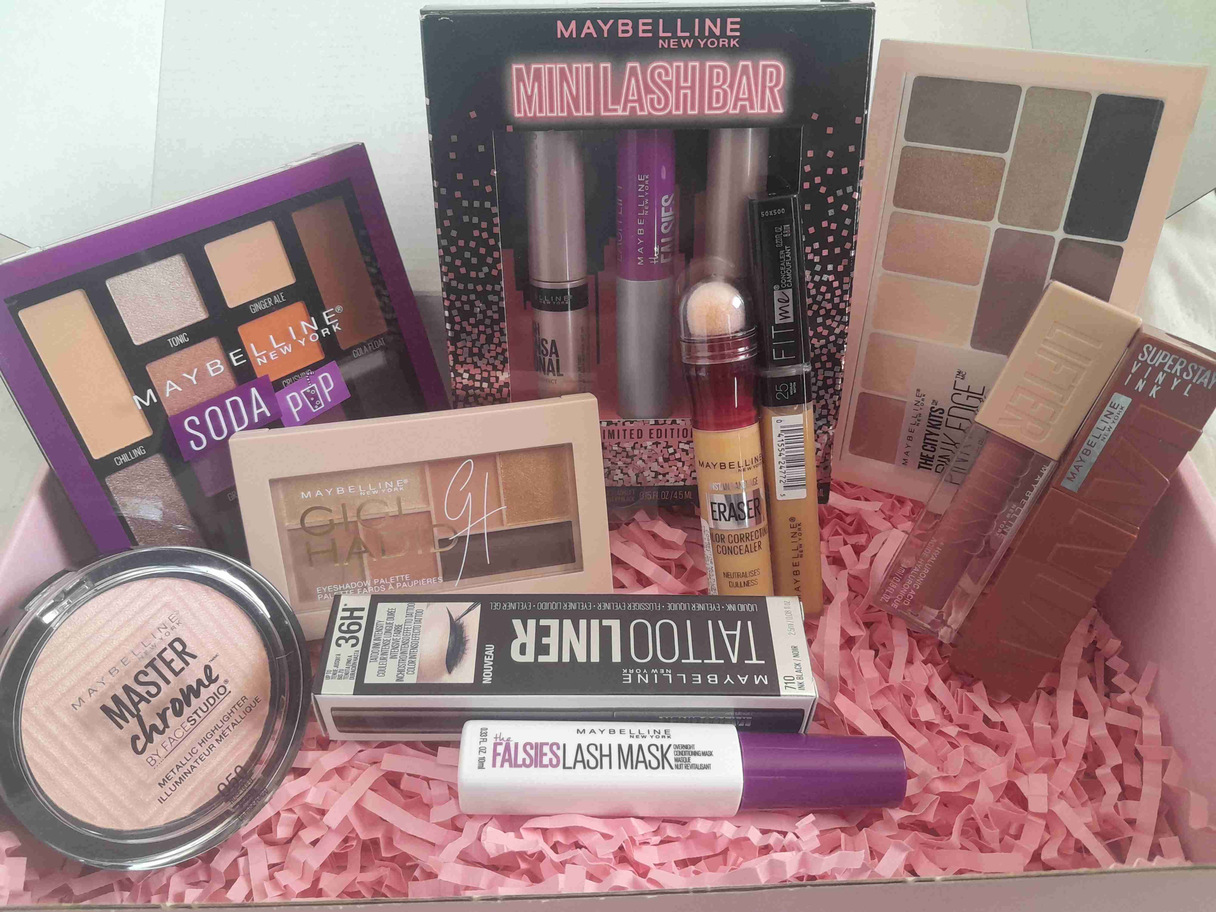 Set completo de maquillaje Maybelline, ideal para un look completo. Incluye sombras, máscara y lápiz delineador. Producto nuevo en excelente estado.
