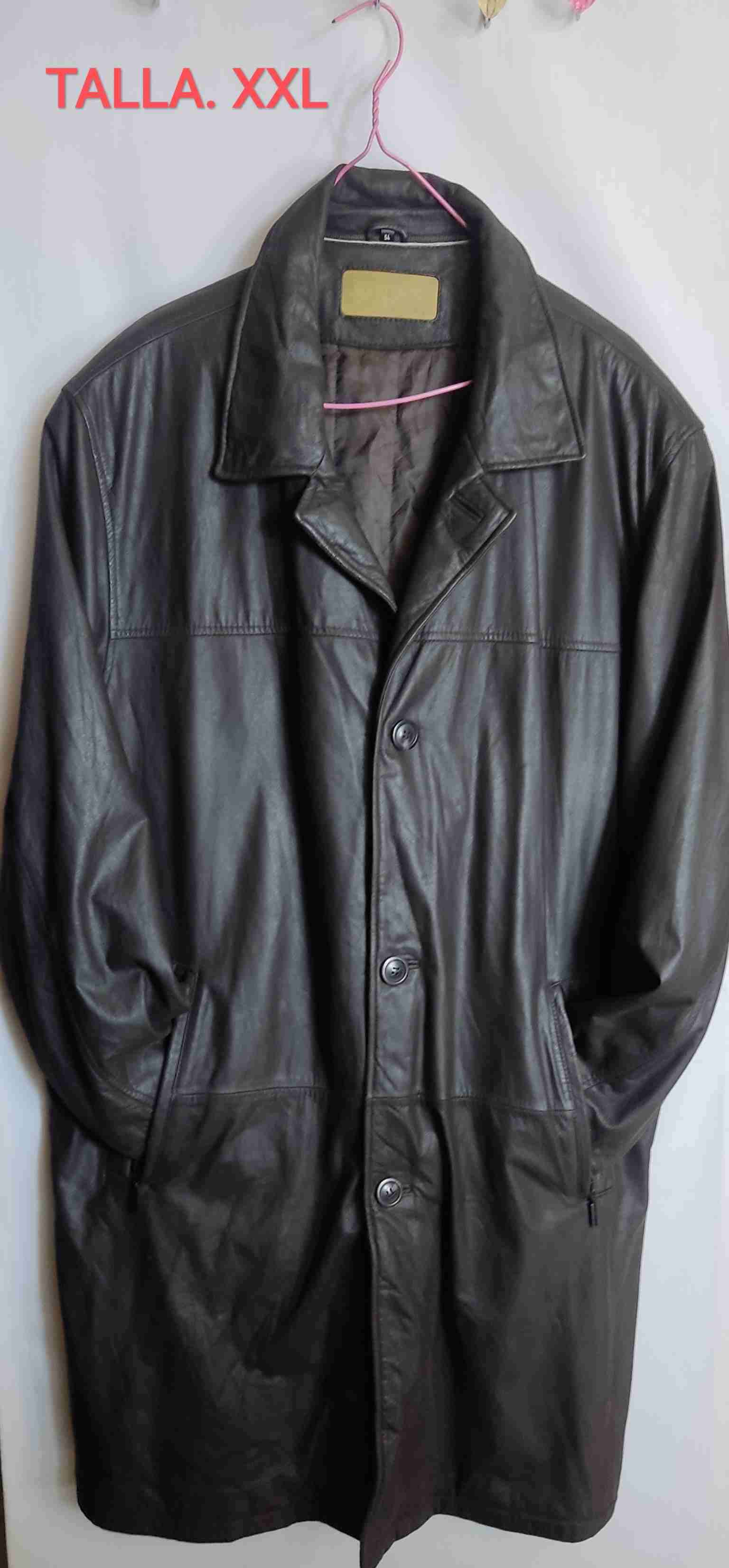 Elegante abrigo de cuero negro en buen estado. Ideal para un look sofisticado y abrigado en invierno.