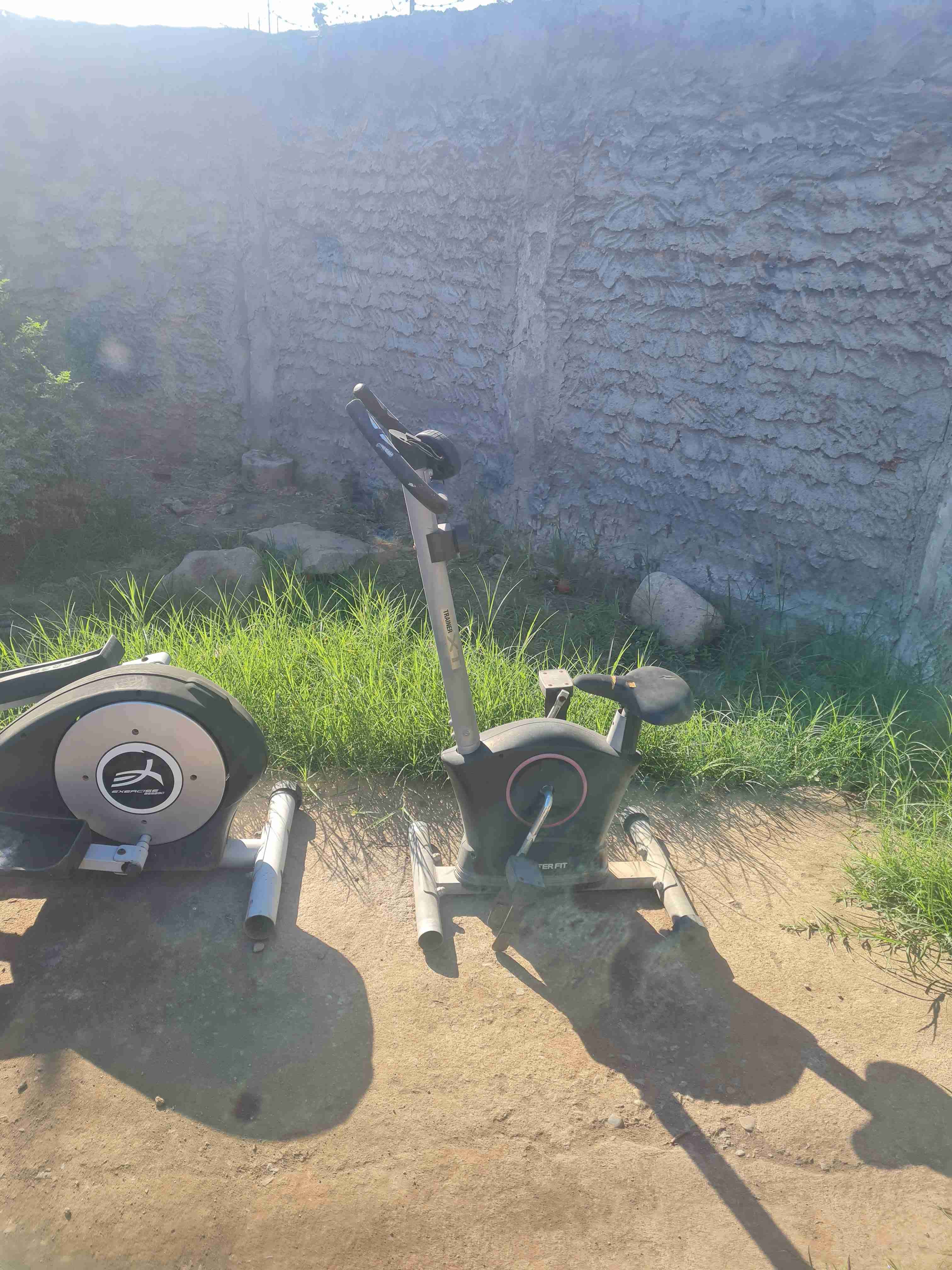 Bicicleta estática ideal para hacer ejercicio en casa. En buen estado, con signos de uso. Se vende el pauete. Tres sillas usadas, con detalles solucionables, pedales, reloj, solo les falta una buena limpieza.