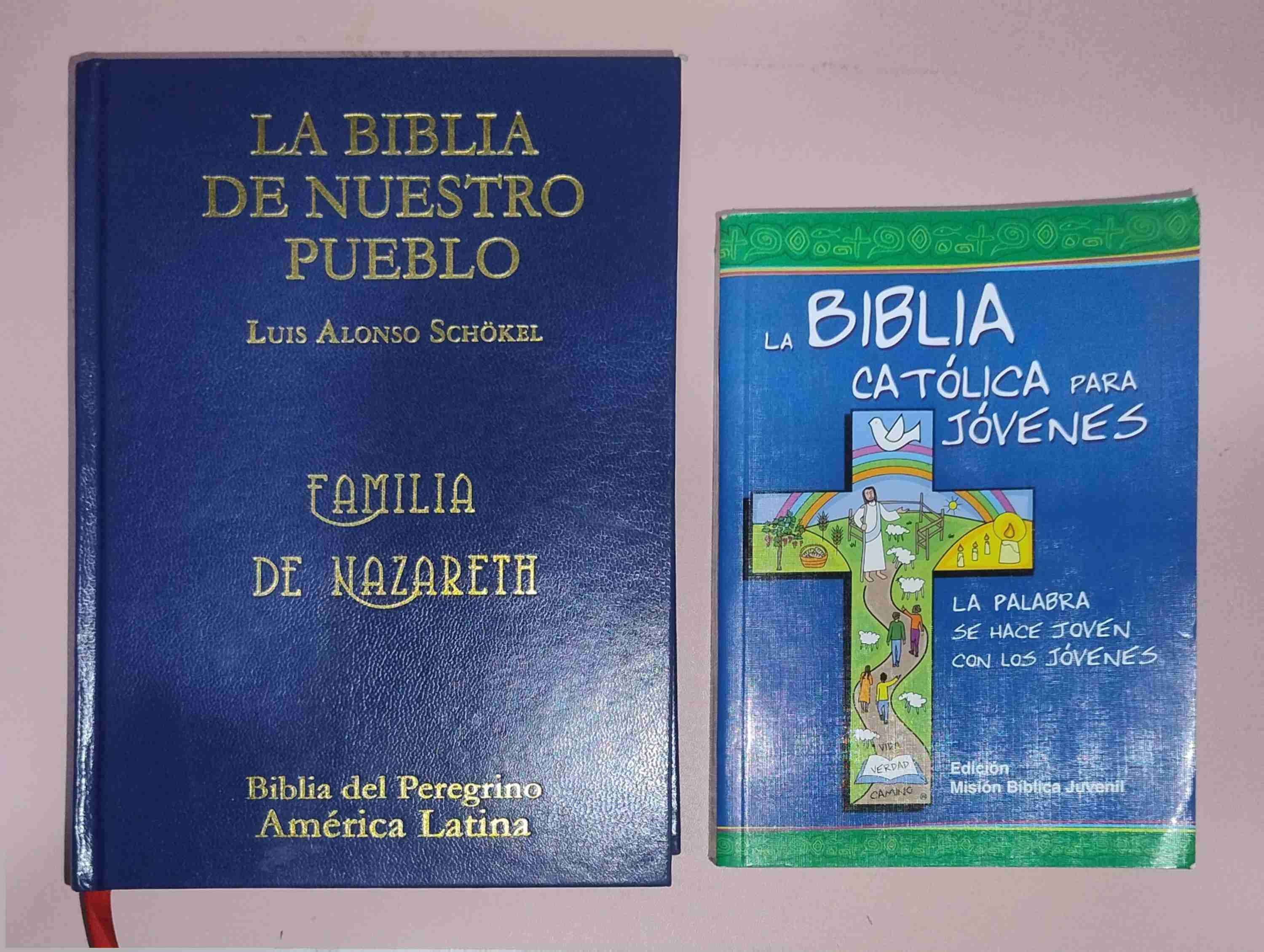 Incluye la Biblia del Peregrino y la Biblia para jóvenes. En buen estado, ideal para lectura espiritual y estudio.