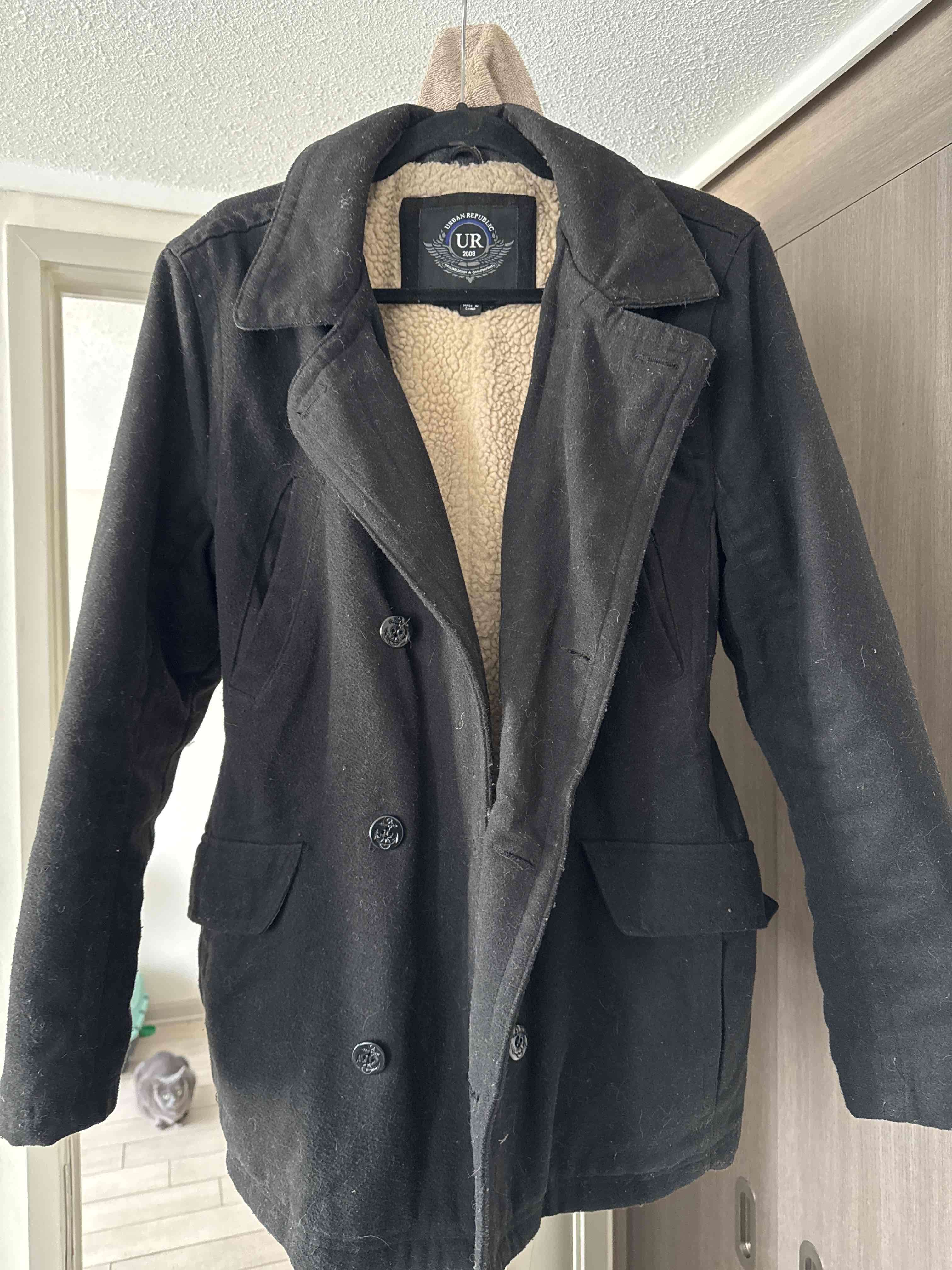 Abrigo negro elegante con forro de lana. Ideal para invierno, en buen estado general.