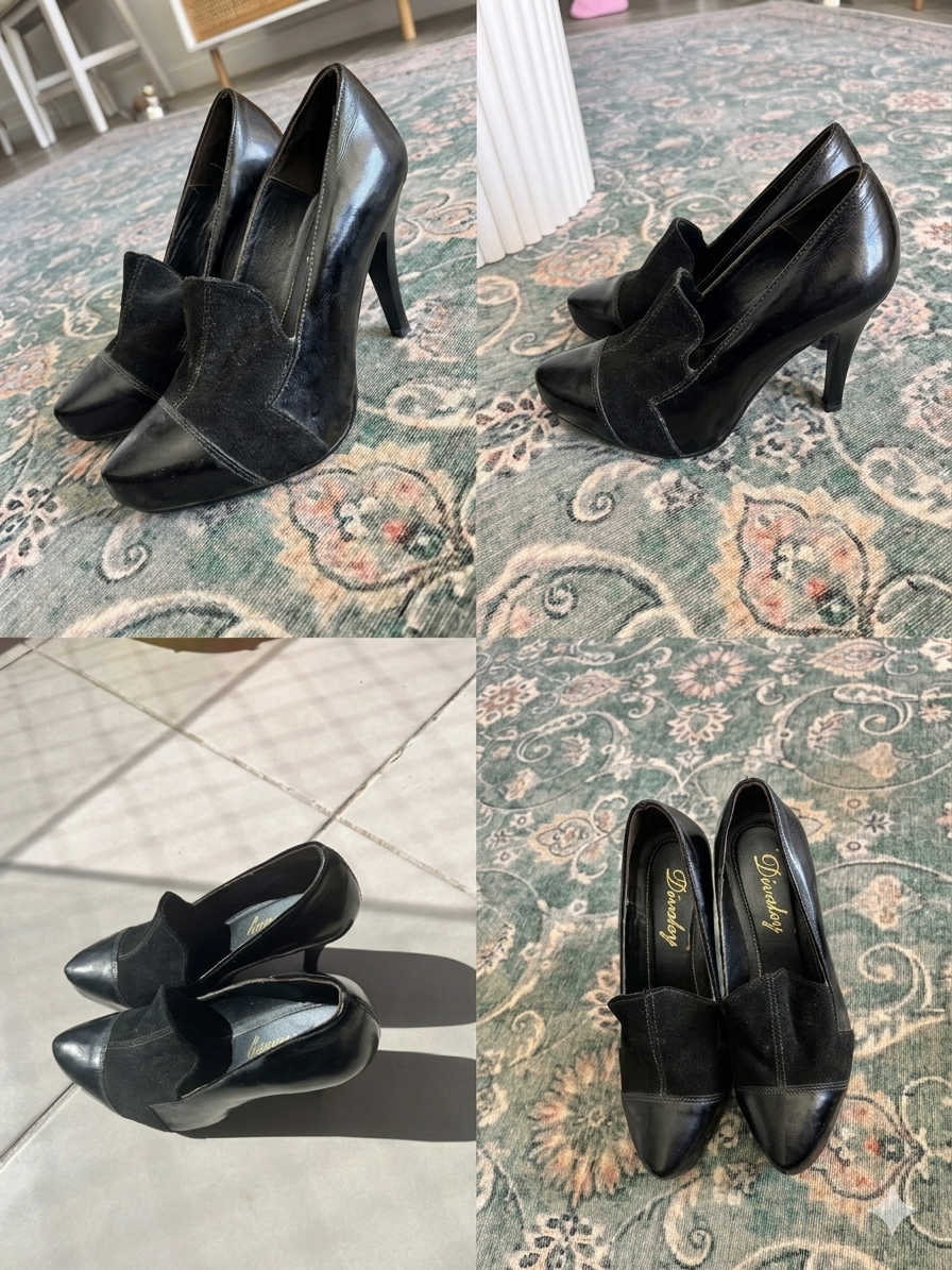 Zapatos de tacón altos en color negro, estilo elegante ideal para eventos formales. En buen estado, con leves signos de uso. Talla 36