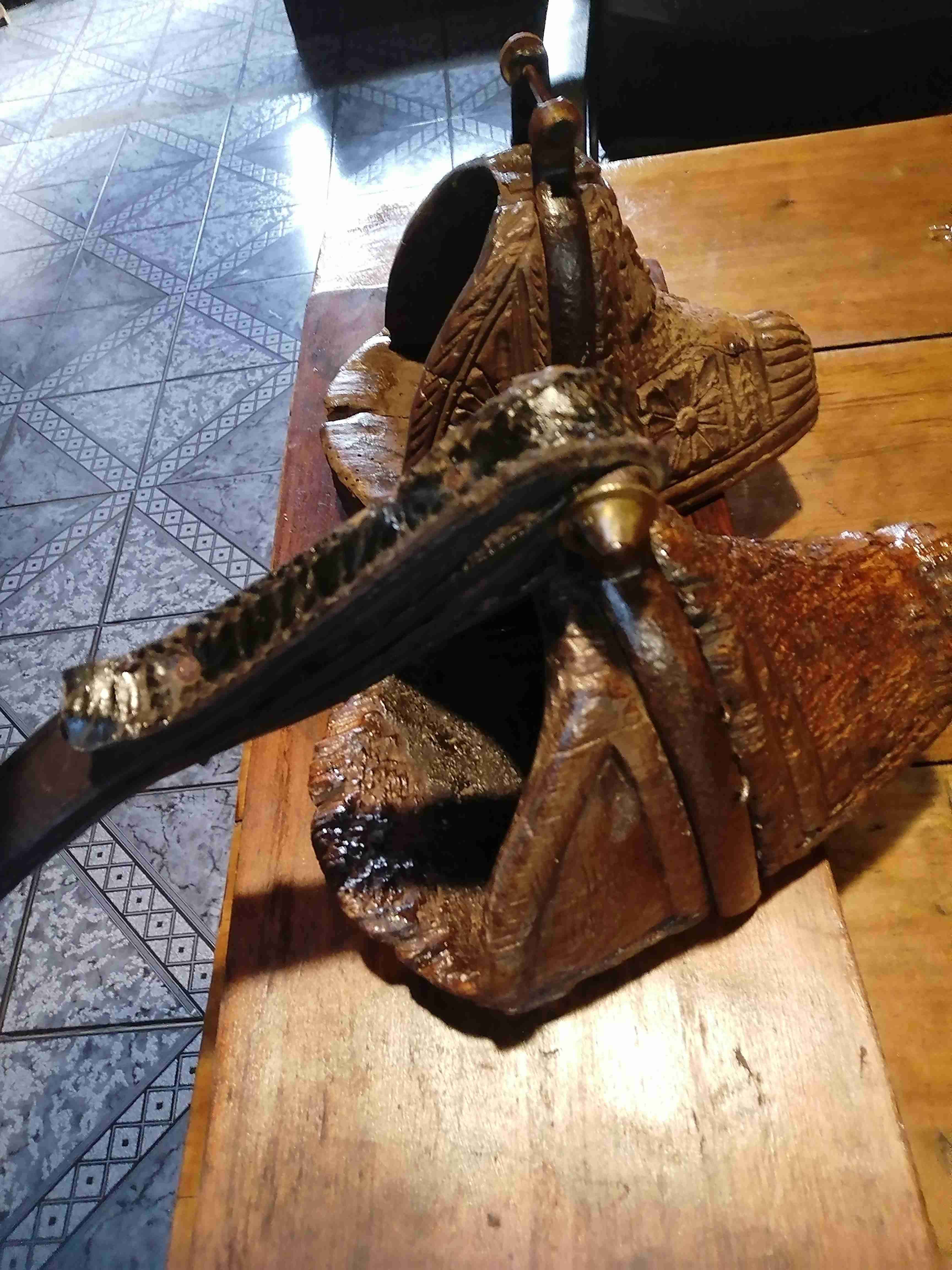 Hermosos estribos de madera con tallado detallado. Ideal para decoración o uso ecuestre.epoca 1800 o 1900..pieza de museo