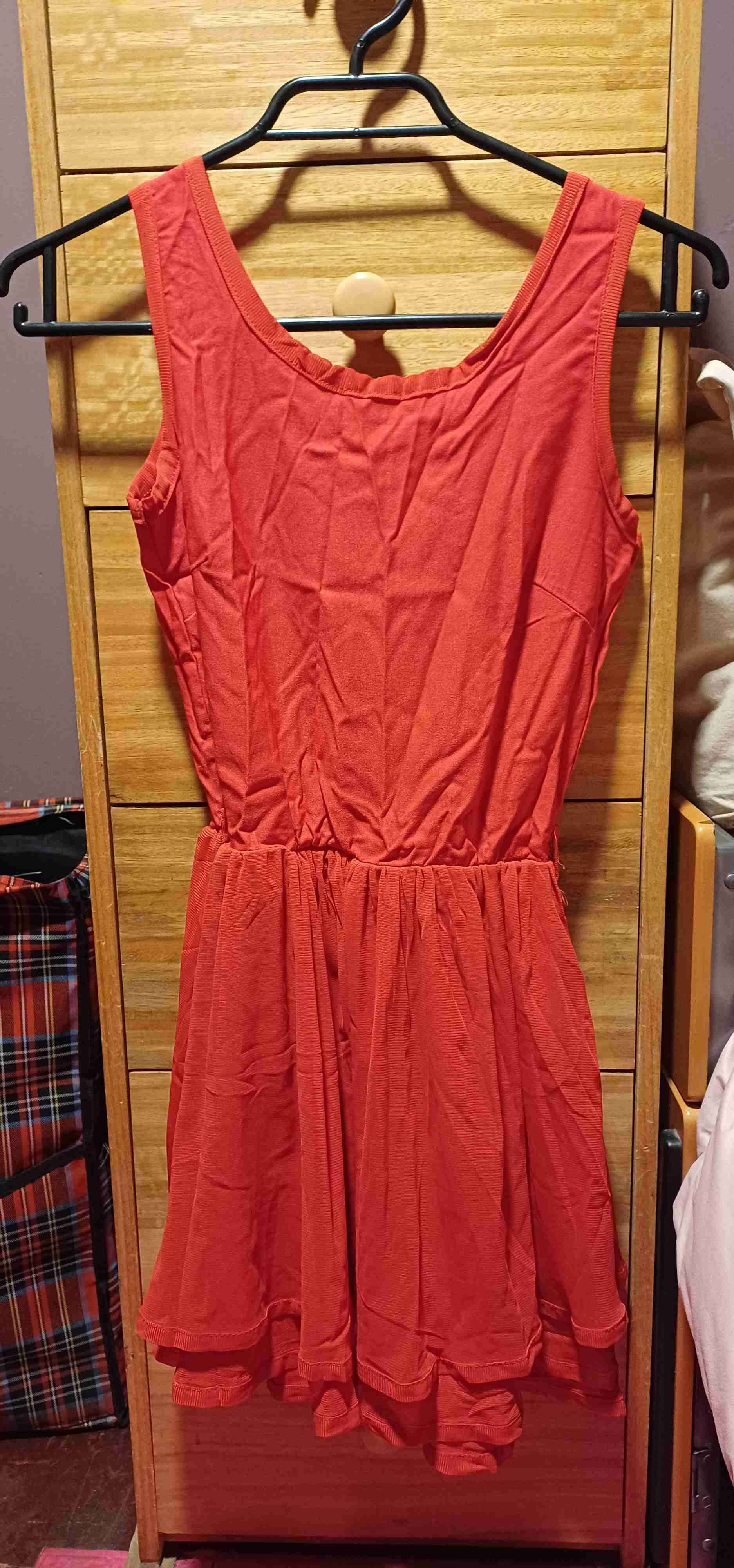Vestido veraniego rojo, ideal para ocasiones casuales. En buen estado.