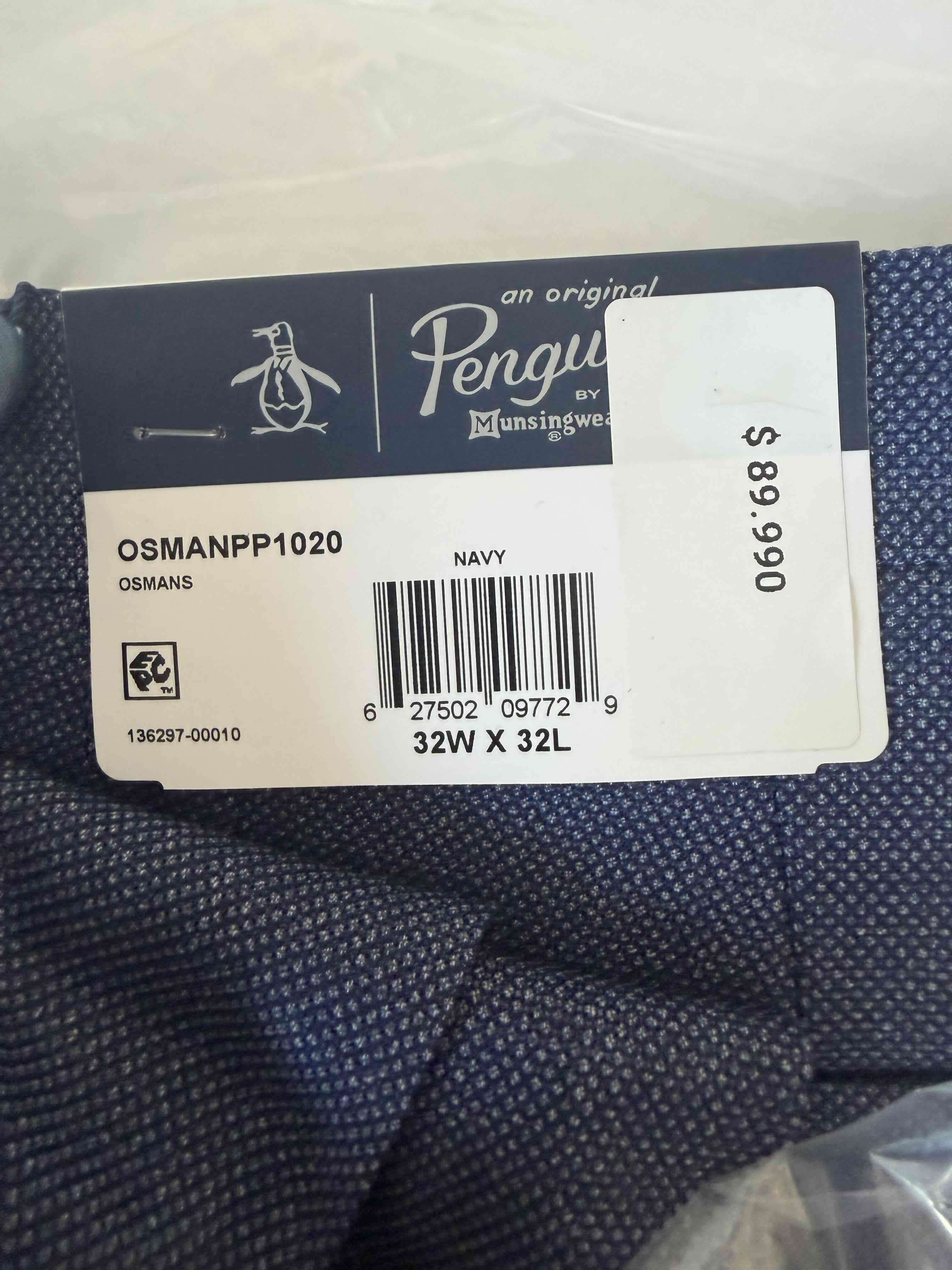 Pantalones en color navy, estilo clásico. Talla 32W x 32L, nuevos con etiqueta. Perfectos para uso diario o eventos casuales.