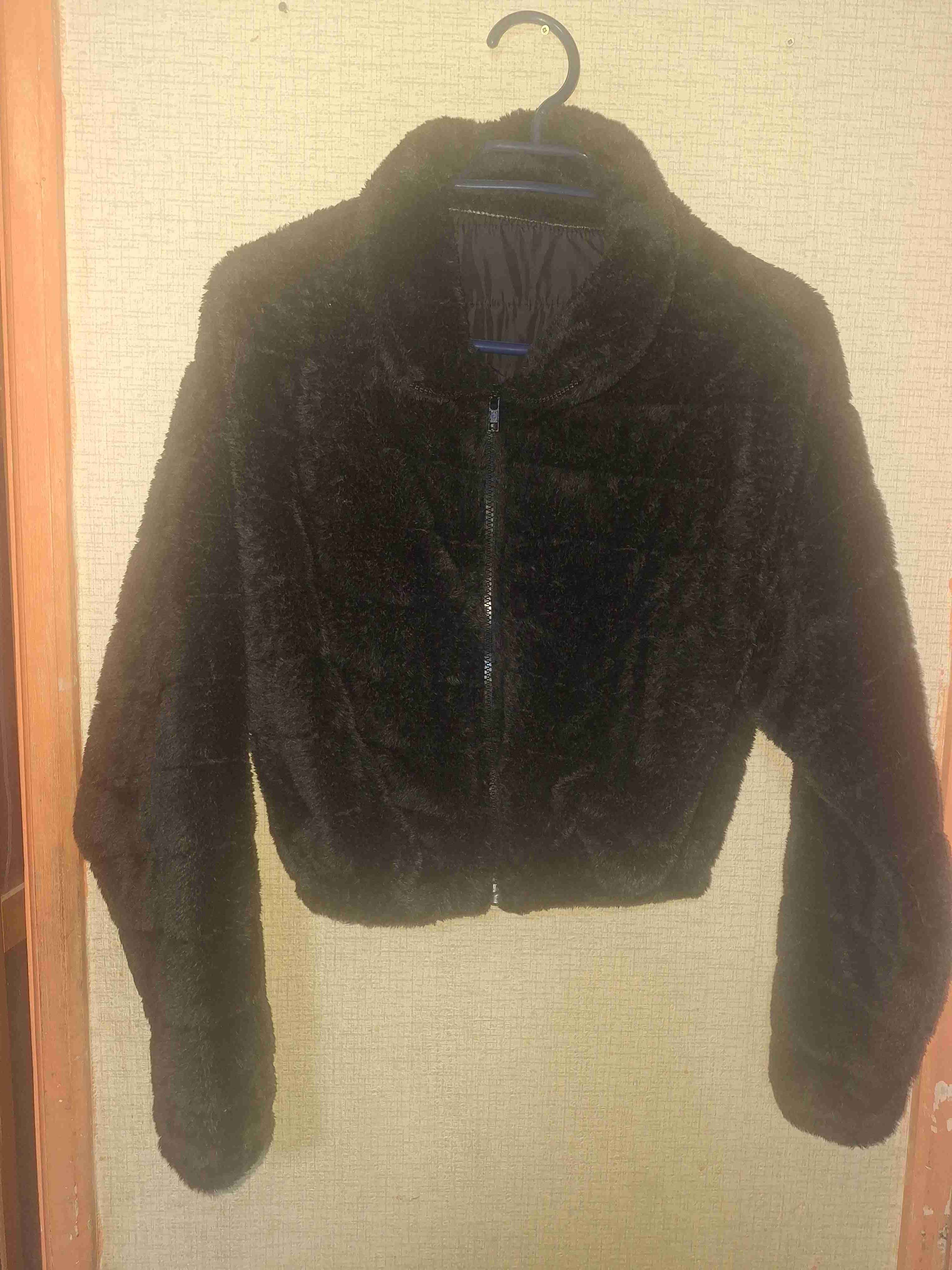 Chaqueta de mujer en piel sintética negra. Estilo moderno y abrigador, ideal para el invierno. En buen estado.