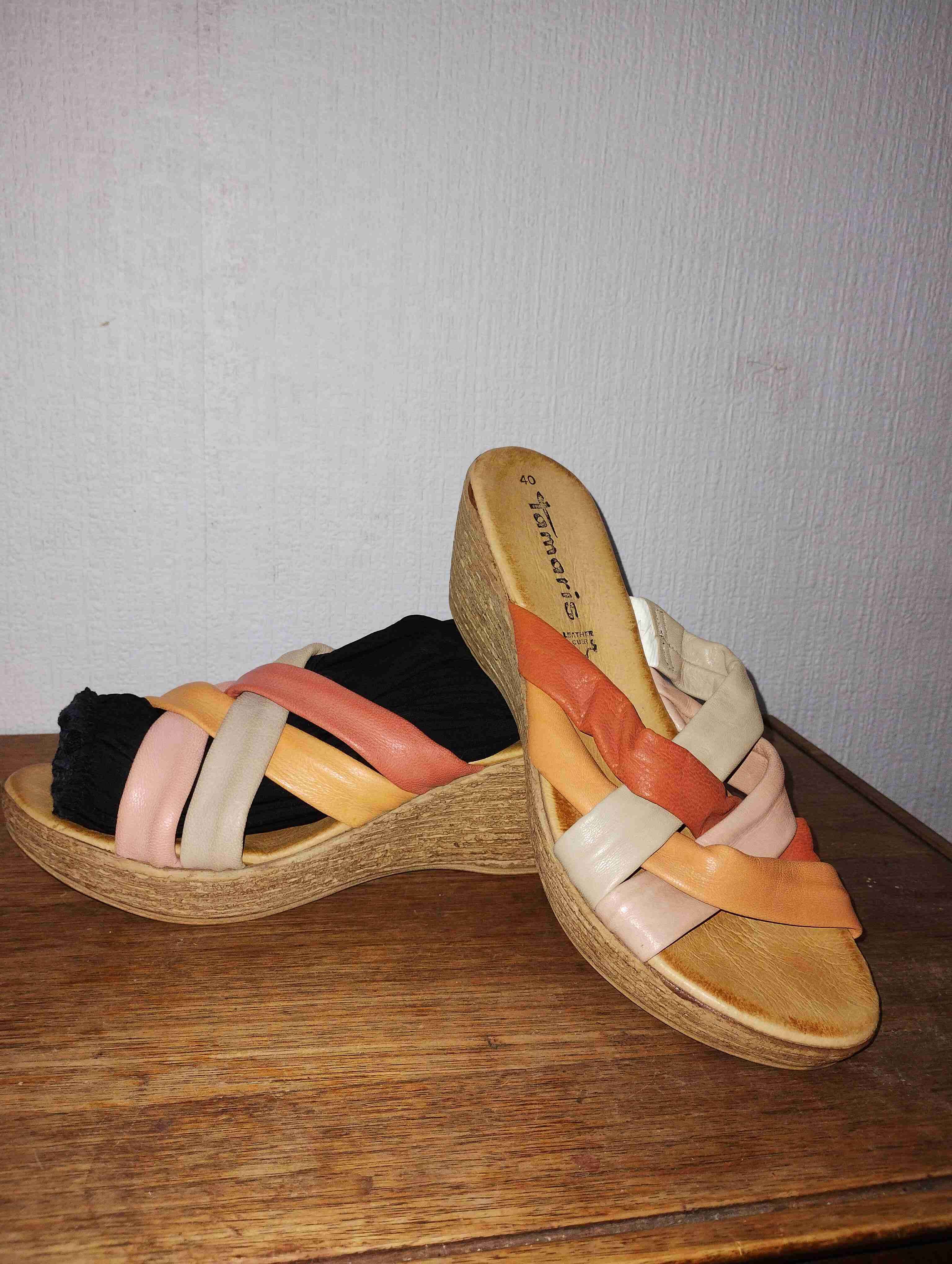 Sandalias con plataforma tipo corcho y tiras en tonos pastel. Buen estado, perfectas para el verano.