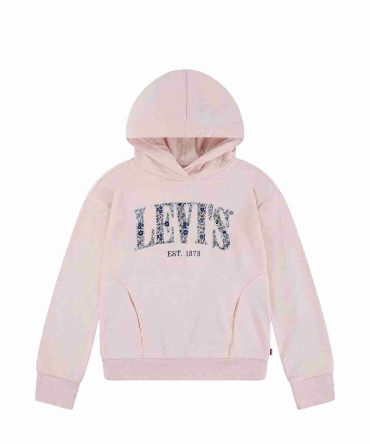 Polerón rosado Levi's con capucha, estilo casual y cómodo. En buen estado, ideal para uso diario.