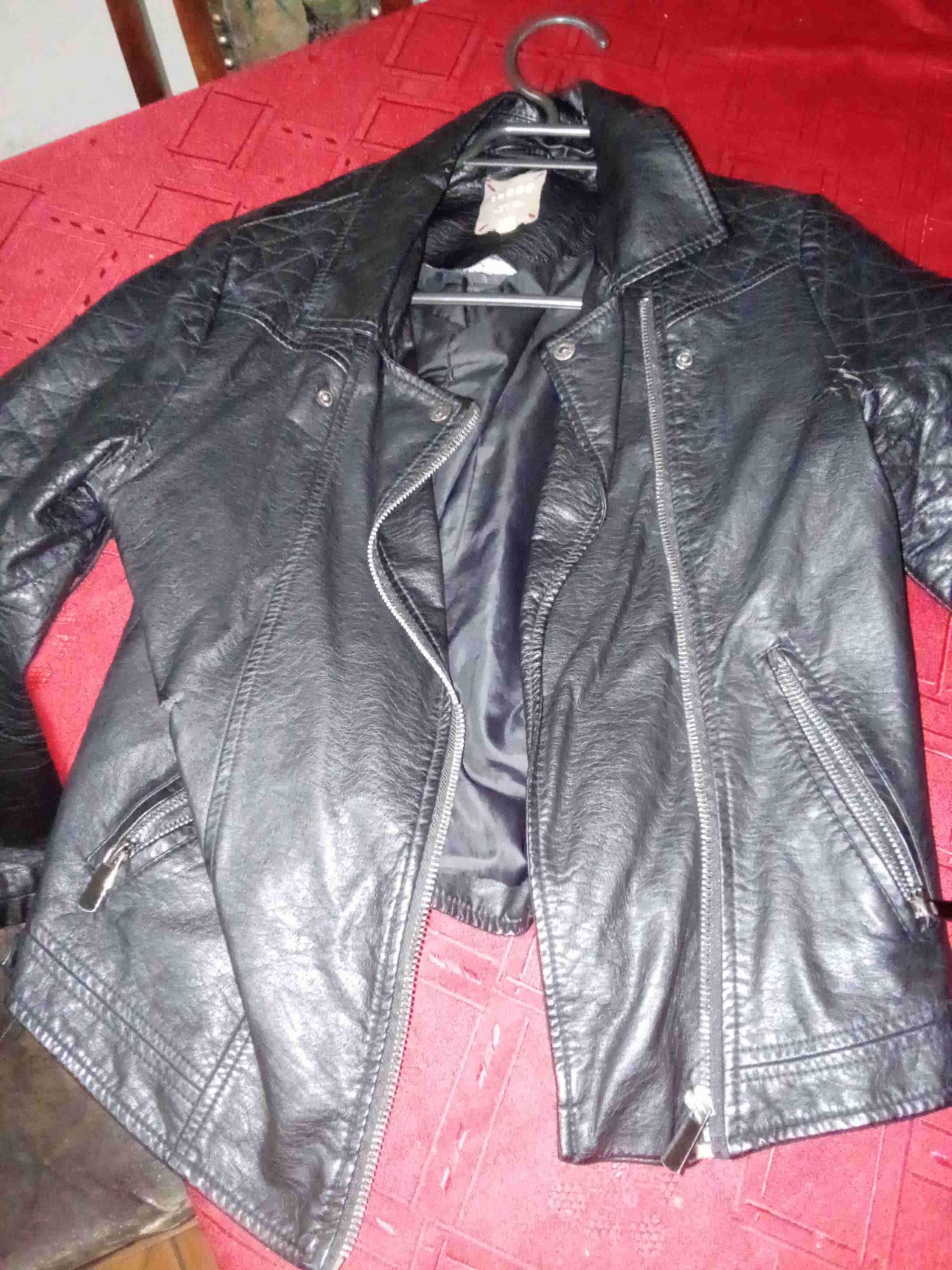 Elegante chaqueta de cuero negra, ideal para el invierno. En buen estado con pequeños signos de uso.