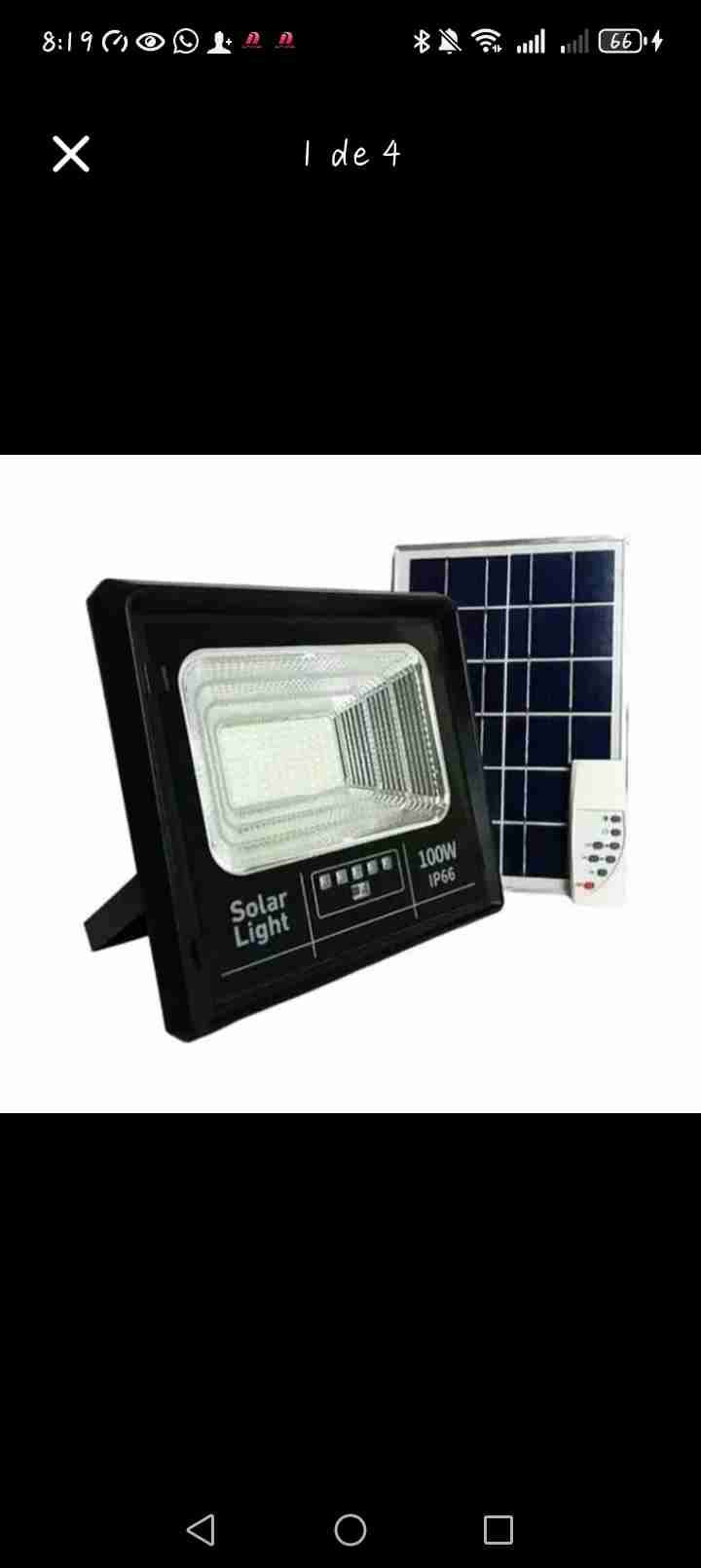 Luz solar LED de 100W con panel y control remoto. Ideal para exteriores. Funciona con energía solar.