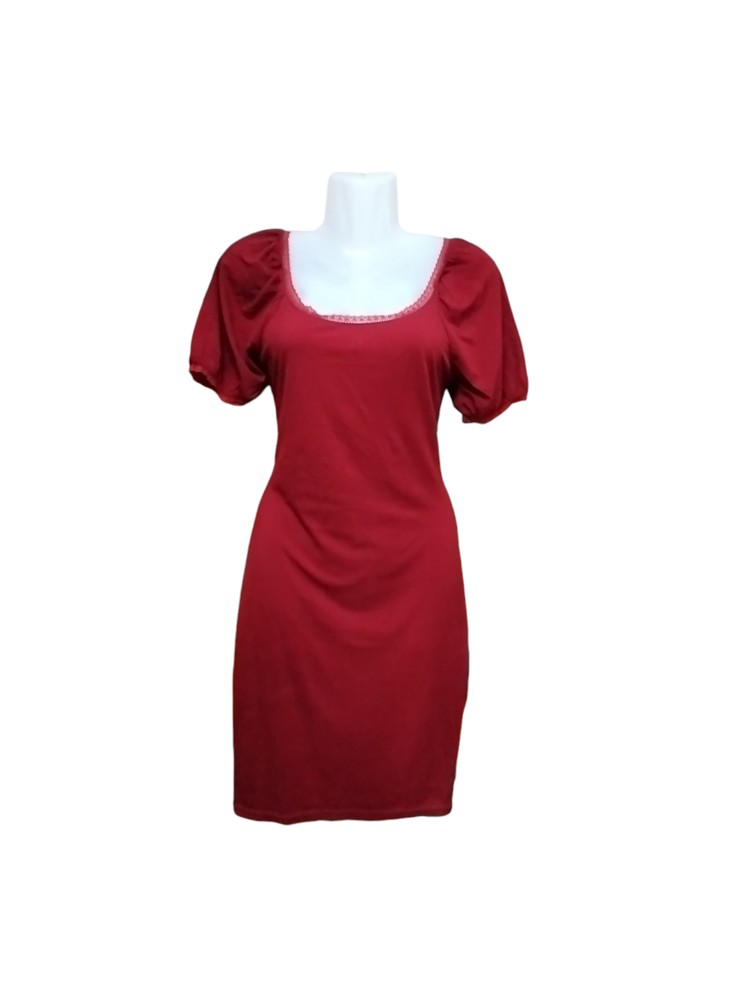Vestido elegante y femenino, de manga corta en color rojo profundo. Ideal para ocasiones especiales. Nuevo. Talla s-m