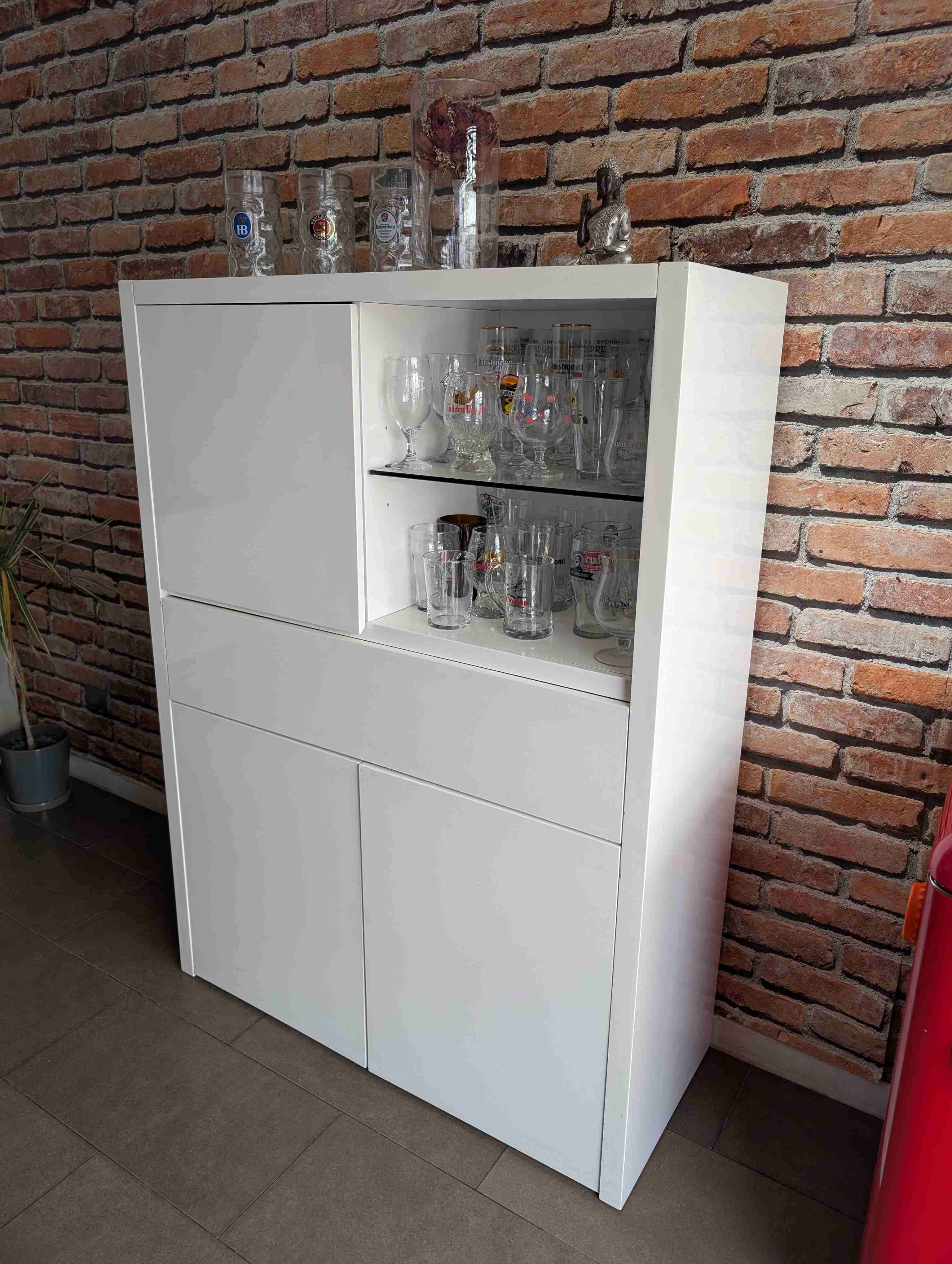 Gabinete de diseño moderno en buen estado, ideal para guardar copas y vasos. Perfecto para el comedor o la sala de estar. Medidas alto 148 CM, Ancho 108 cm y 45 cm profundidad La venta requiere retiro en la reina