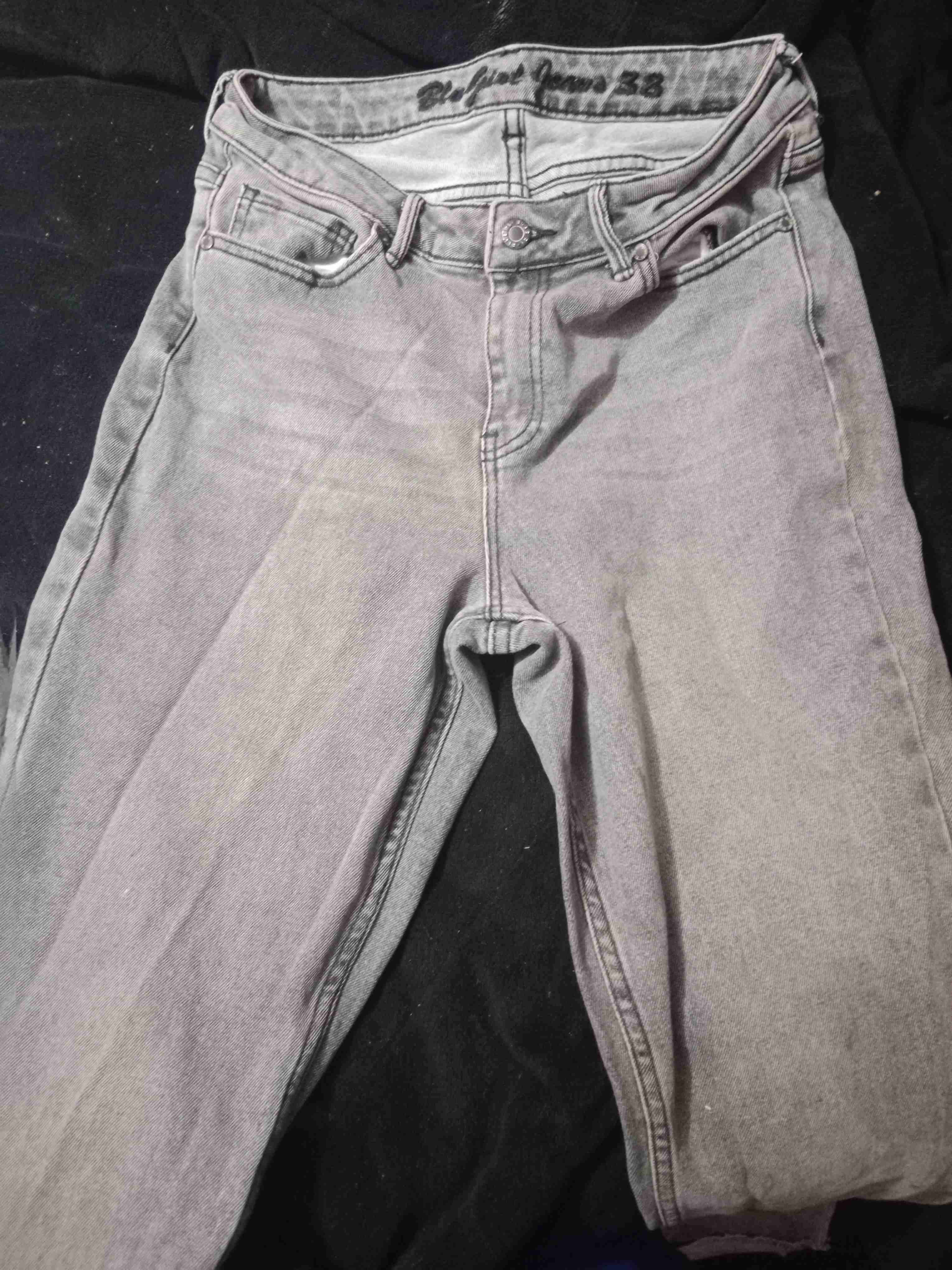 Jeans grises de mezclilla, estilo clásico, en buen estado. Perfectos para uso diario.