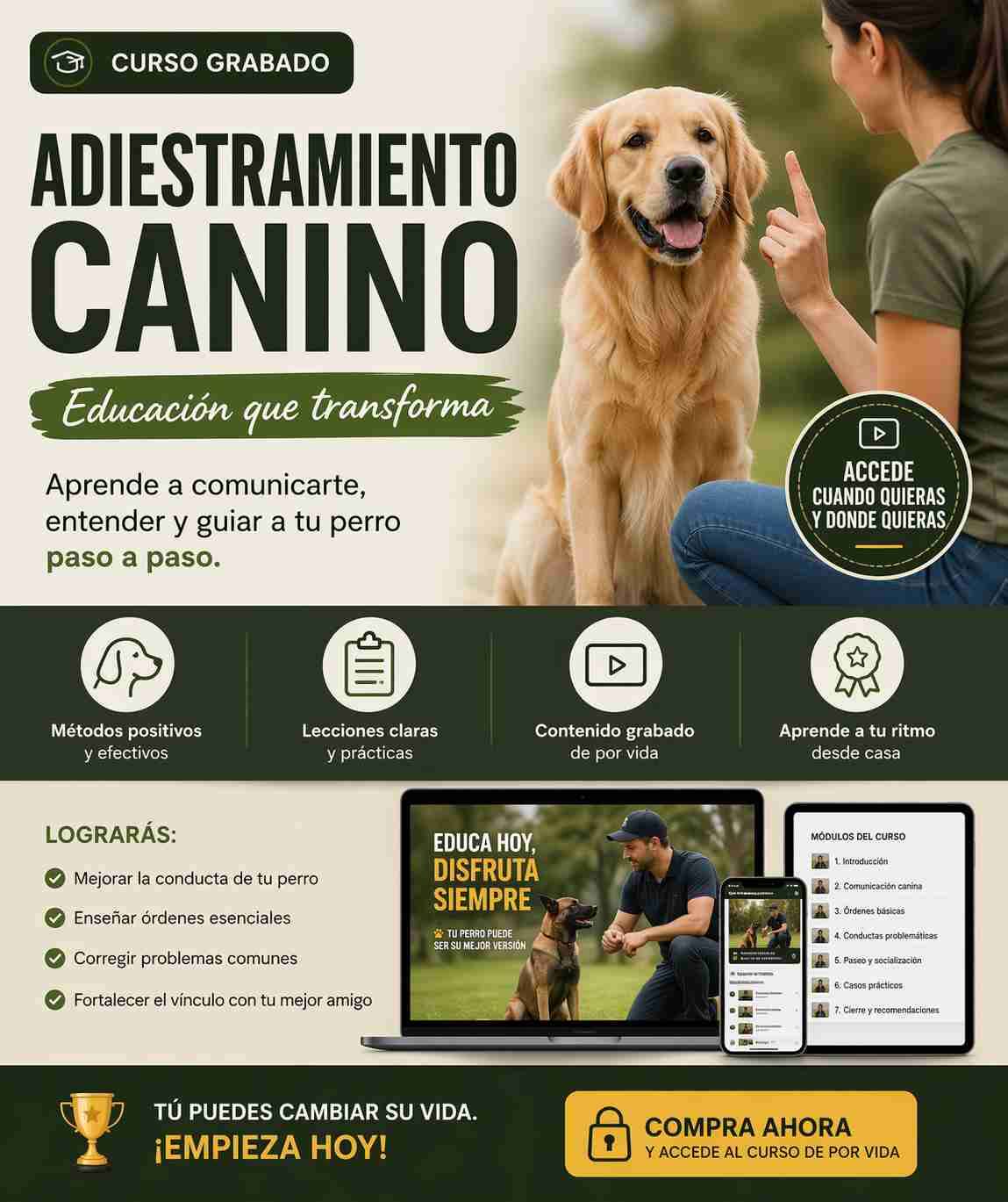 Aprende a educar a tu perro con métodos positivos desde casa. Curso grabado disponible siempre.