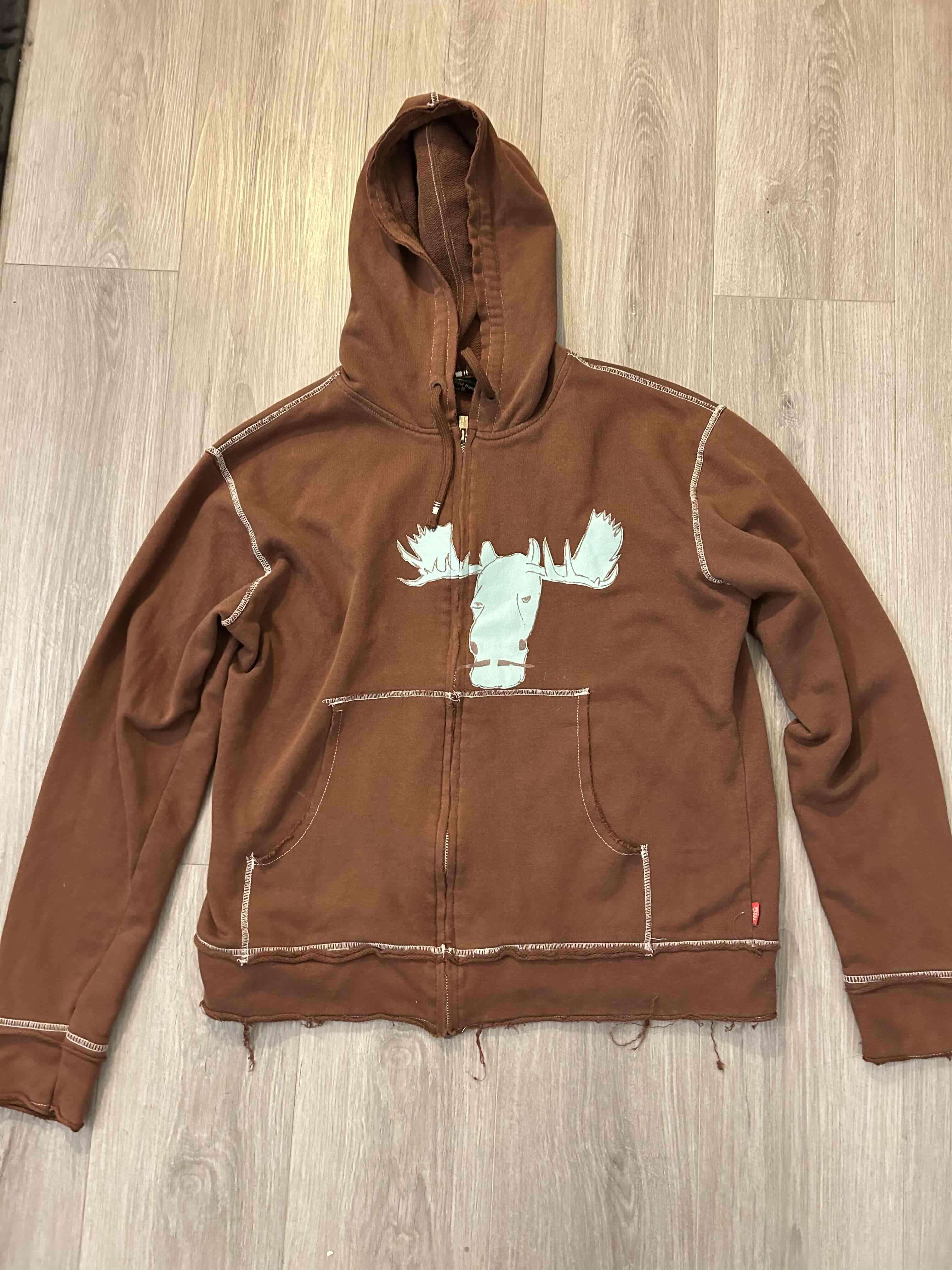 Polerón con capucha de diseño con alce blanco. Estado general bueno, ideal para uso casual.