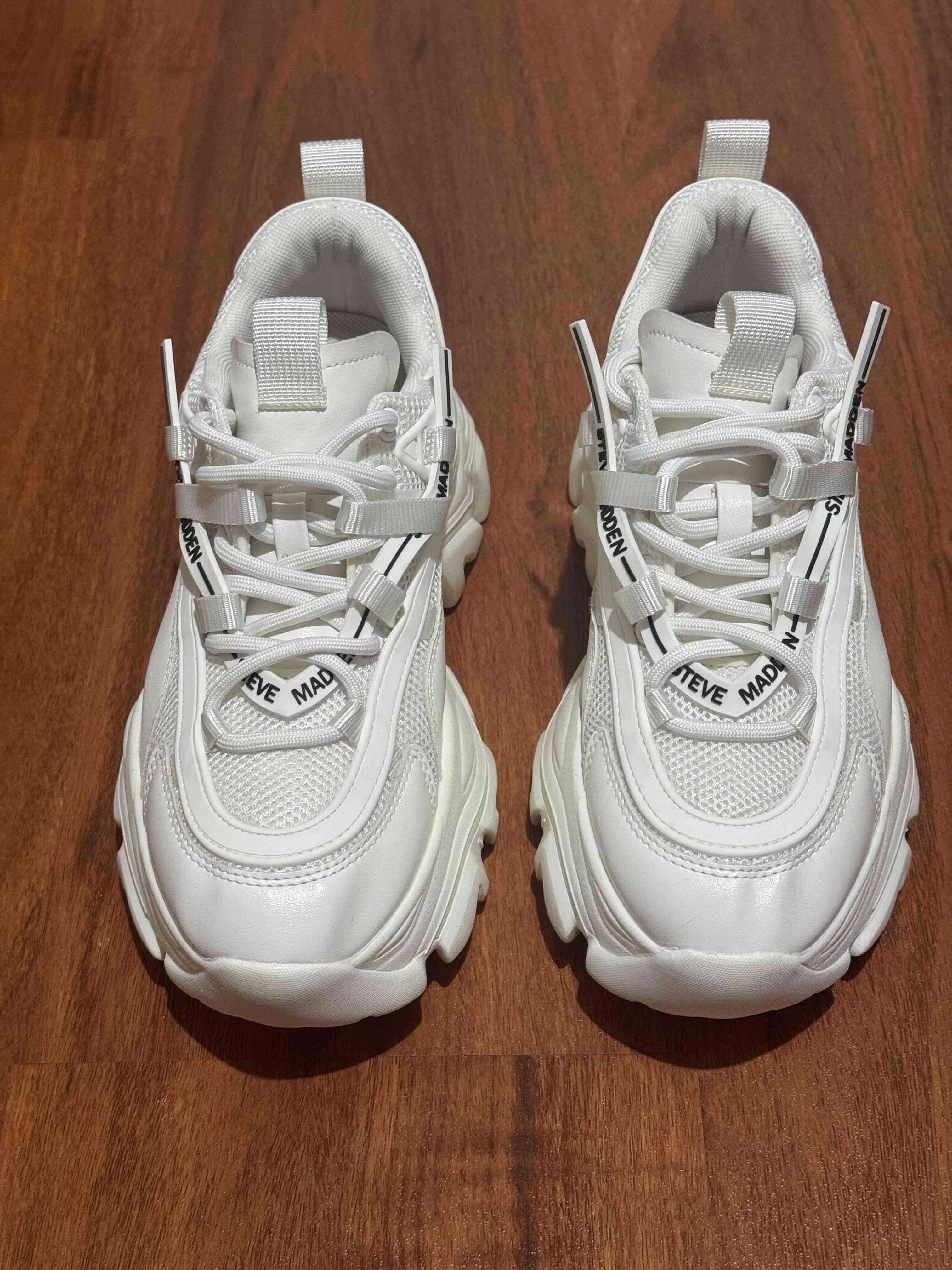 Zapatillas deportivas blancas, estilo urbano, en buen estado. Ideales para un look casual.