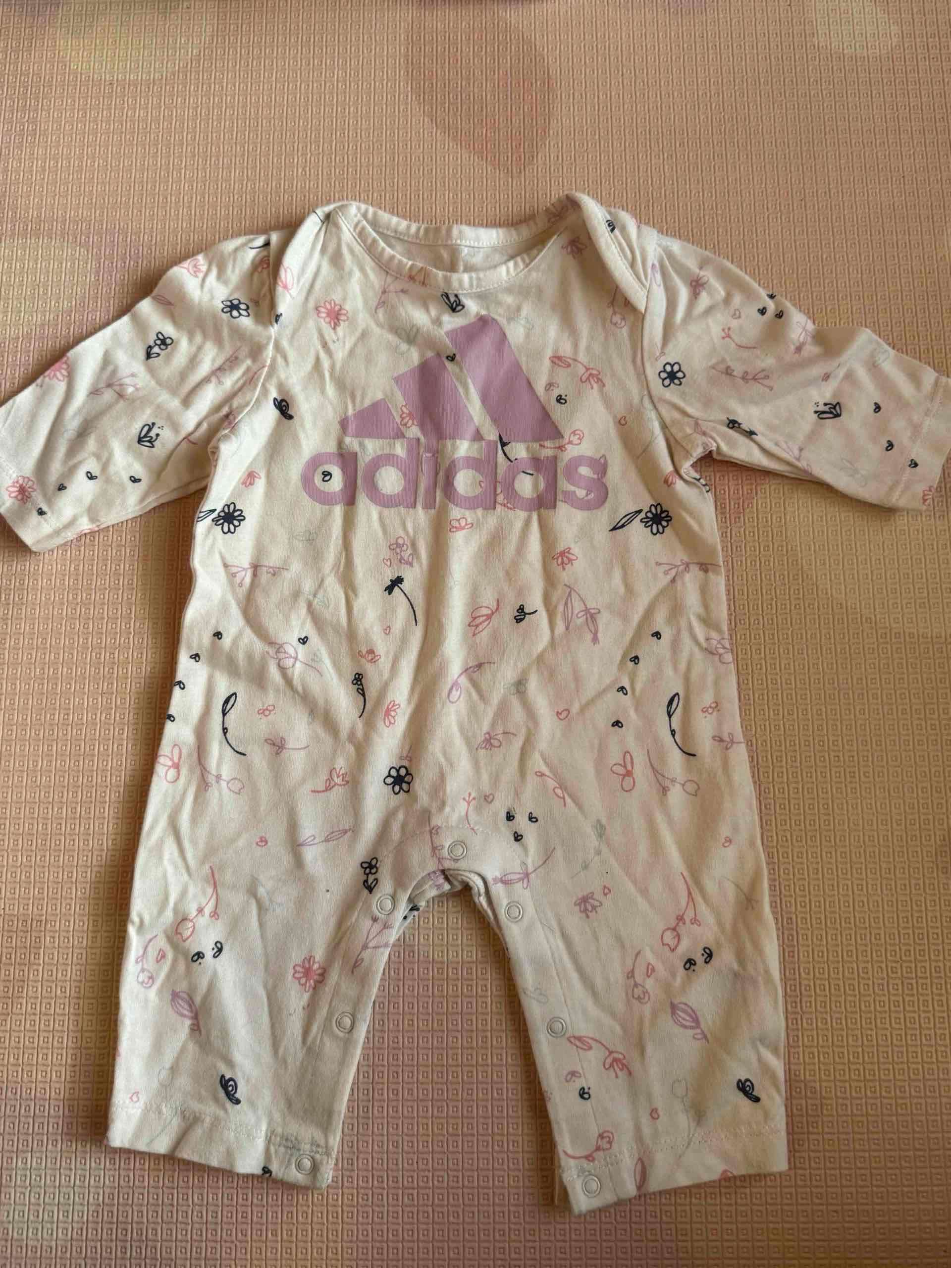 Monito de bebé Adidas en buen estado, con estampado floral y logo. Ideal para el día a día. Nuevo sin etiqueta