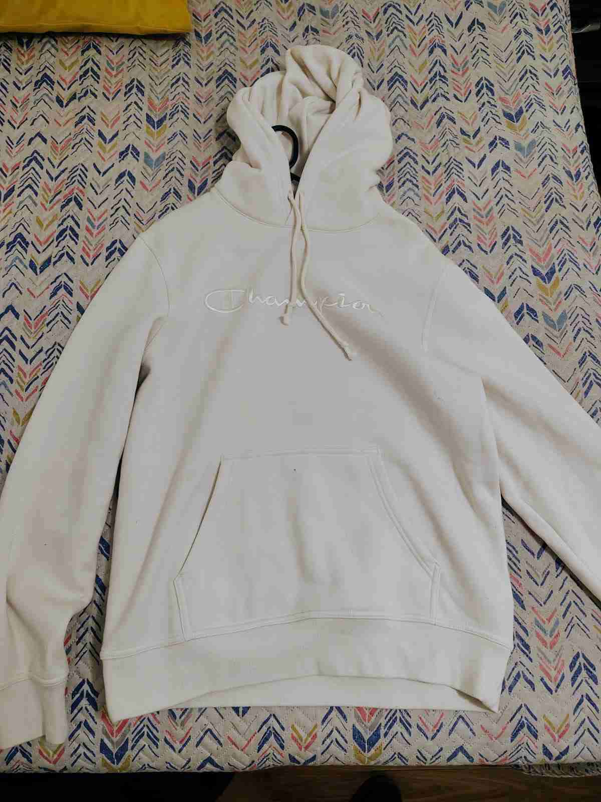 Cómodo polerón blanco con capucha y bolsillo delantero. Ideal para el clima frío. Tiene apenas unos 3 usos. (Pronto subo foto con el puesto)