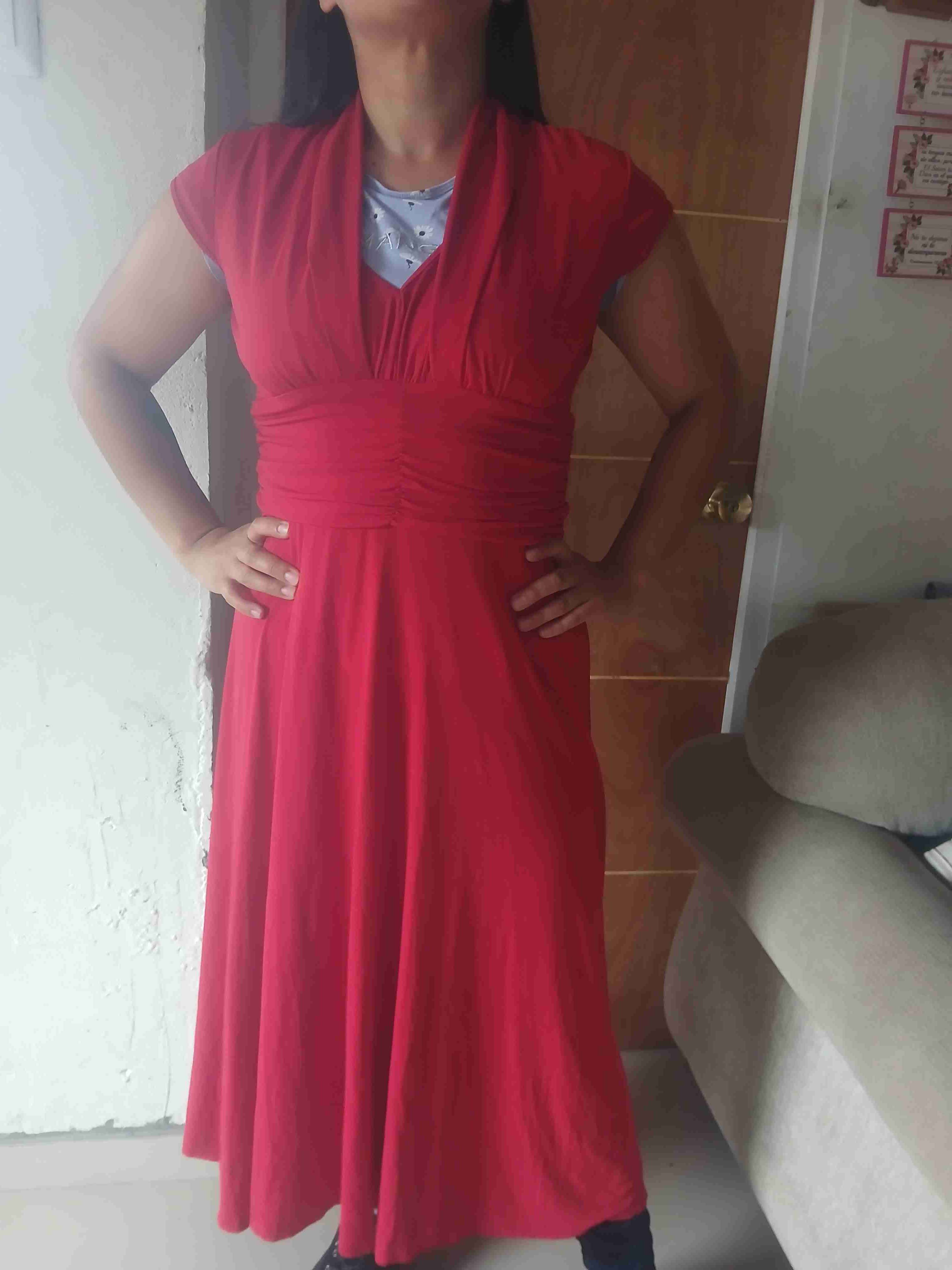 Vestido largo rojo, ideal para ocasiones casuales. En buen estado general, con leves signos de uso.