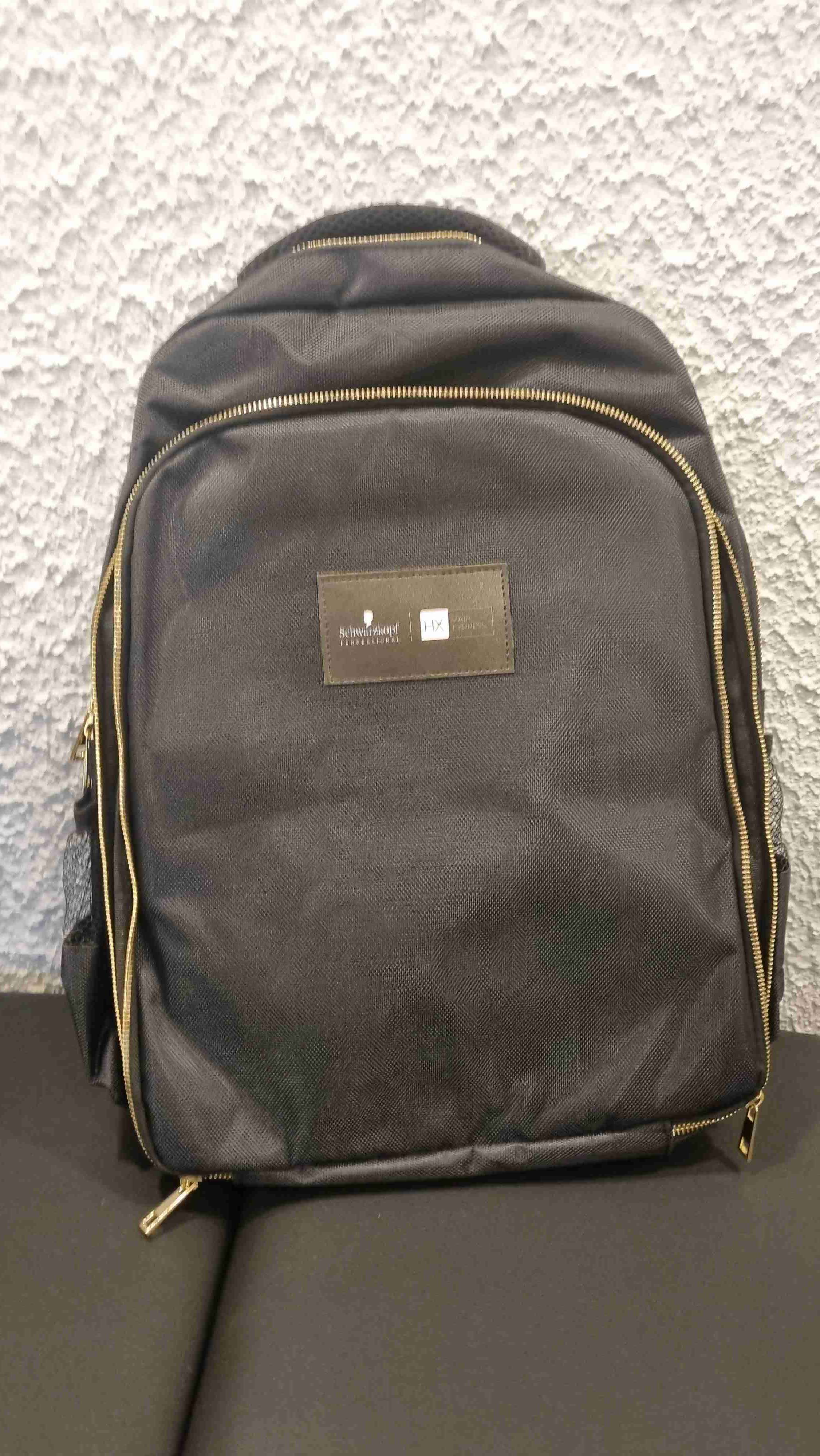 Mochila estilo casual, negra con detalles dorados. Ideal para uso de estilistas para cargar sus herramientas