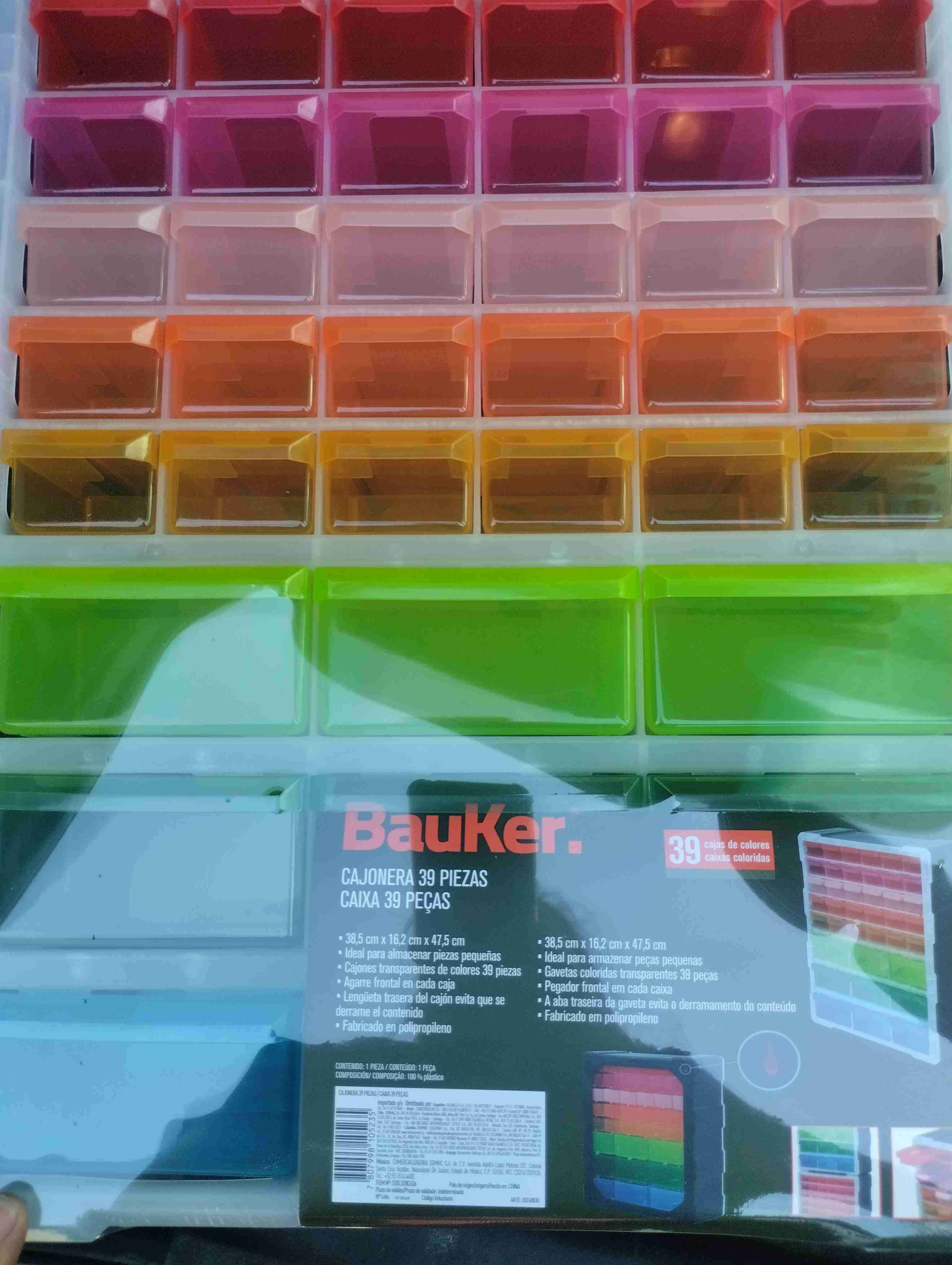 Cajonera colorida con 39 cajones de plástico. Ideal para organizar piezas pequeñas.
