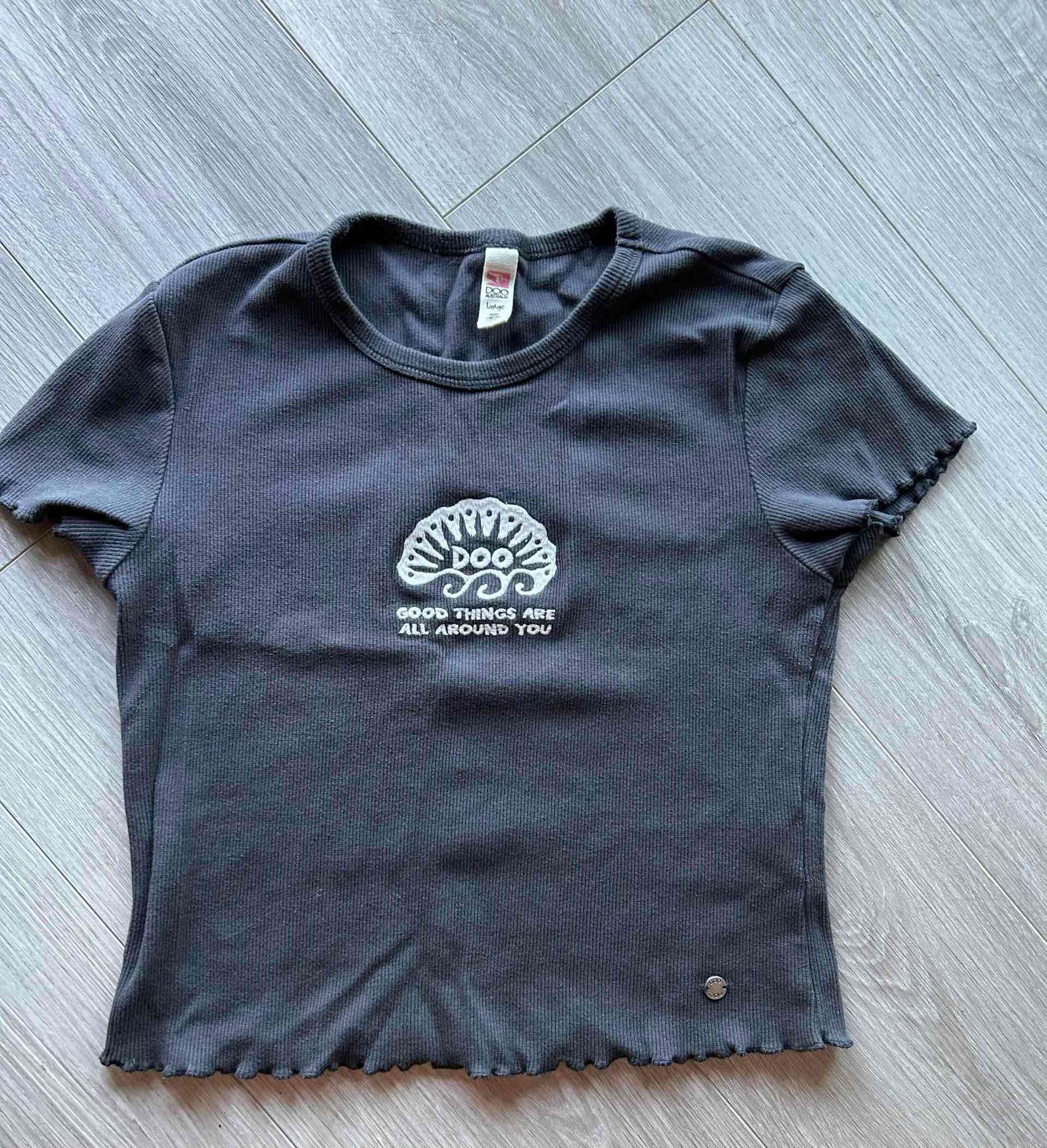 Polera gris de manga corta con diseño bordado y frase motivacional. En buen estado, ideal para uso casual. Dice talla L , pero es más una talla M ajustadita