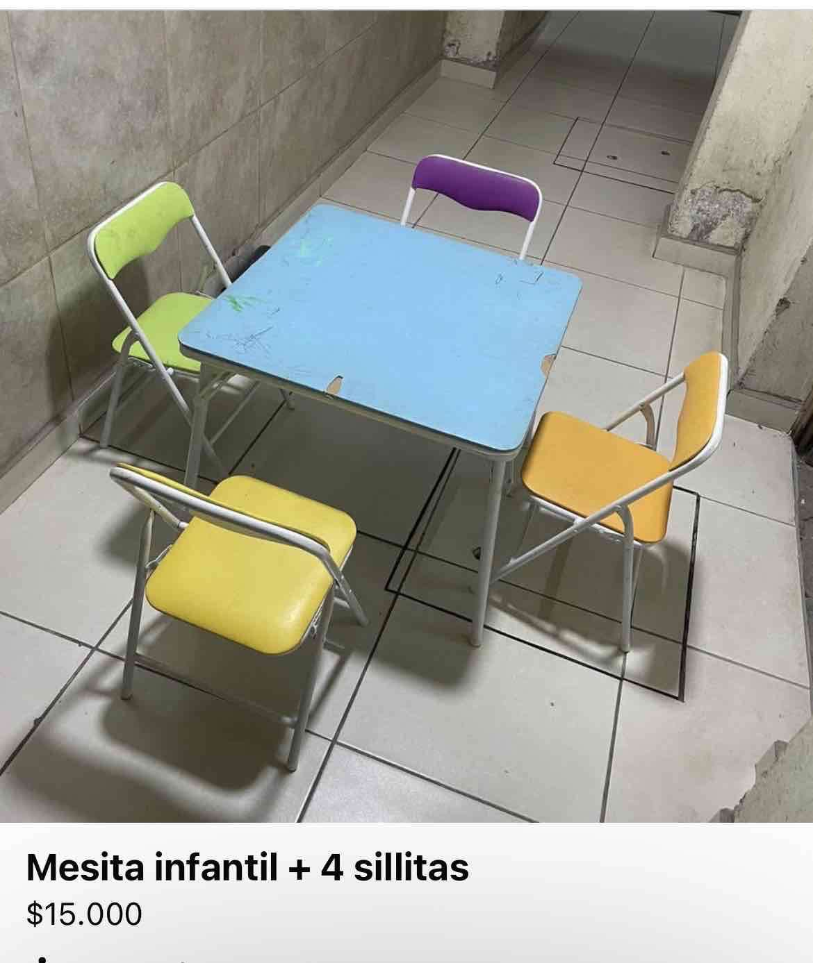 Mesa infantil con 4 sillas coloridas