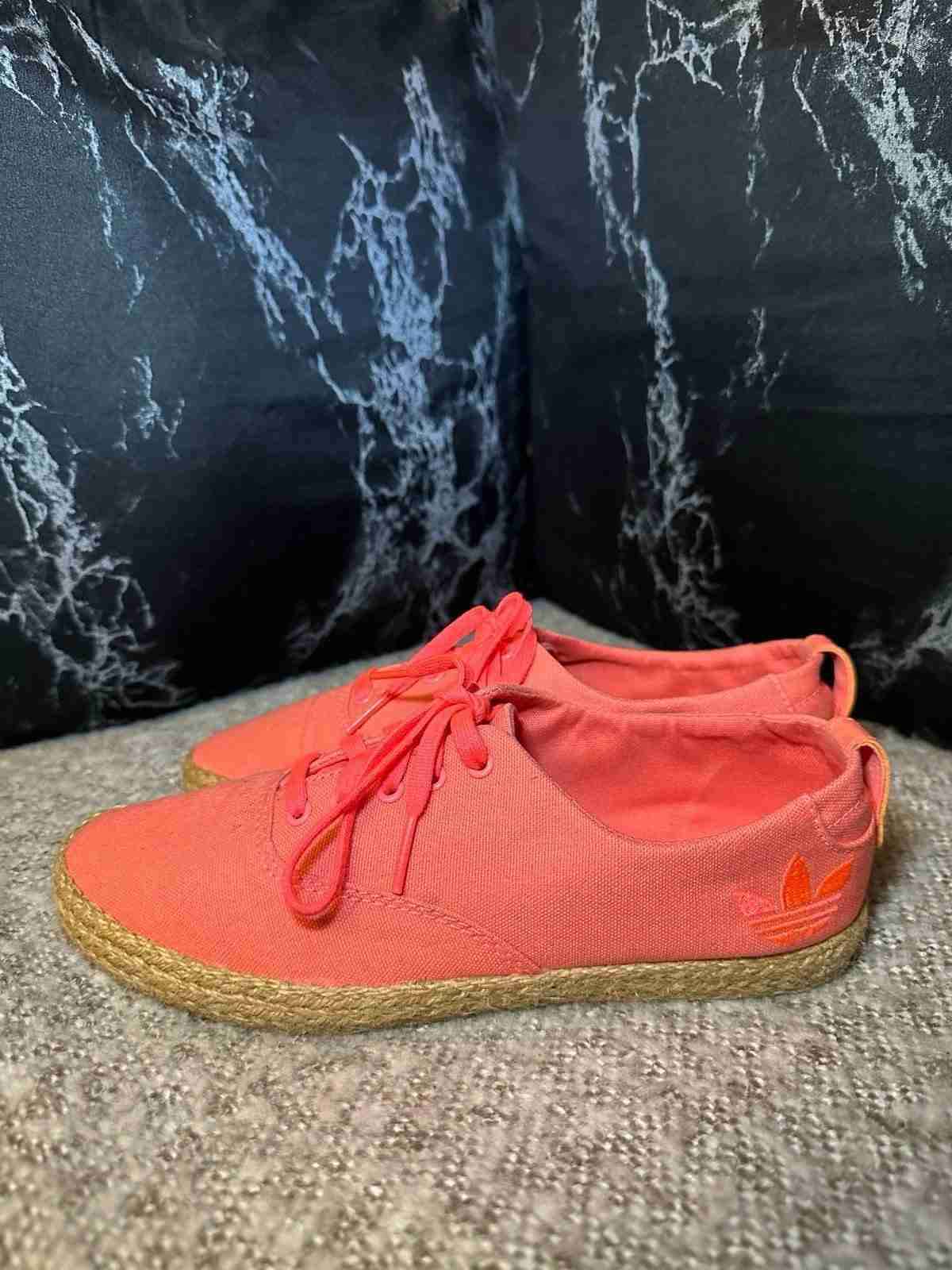 Zapatillas Adidas color coral y flores con suela de yute. Perfectas para un look casual y cómodo. En buen estado. C/u $16.000