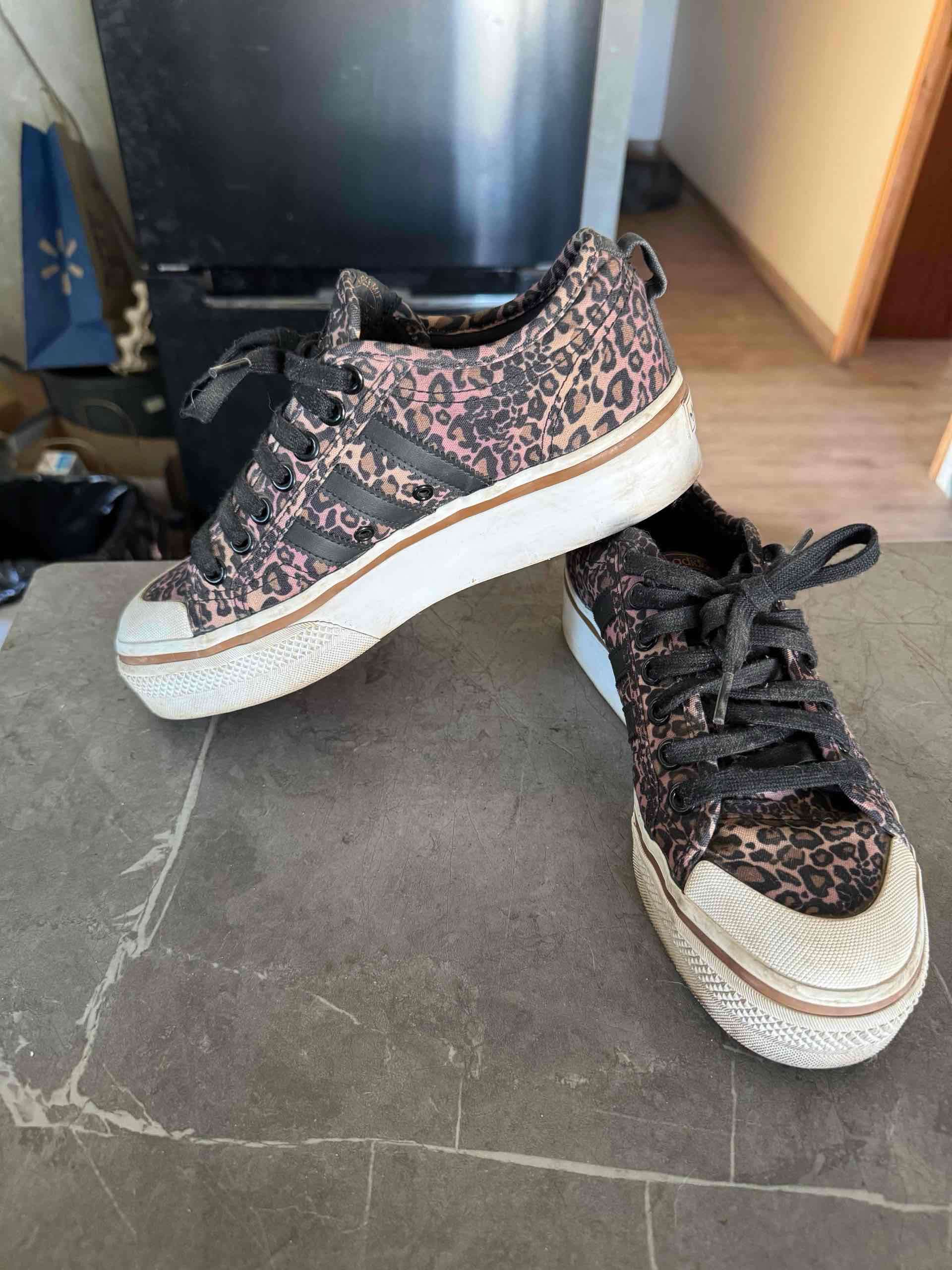 Zapatillas deportivas con diseño de leopardo, estilo casual y moderno. Buen estado, ideales para uso diario. Talla us9 25,5cm