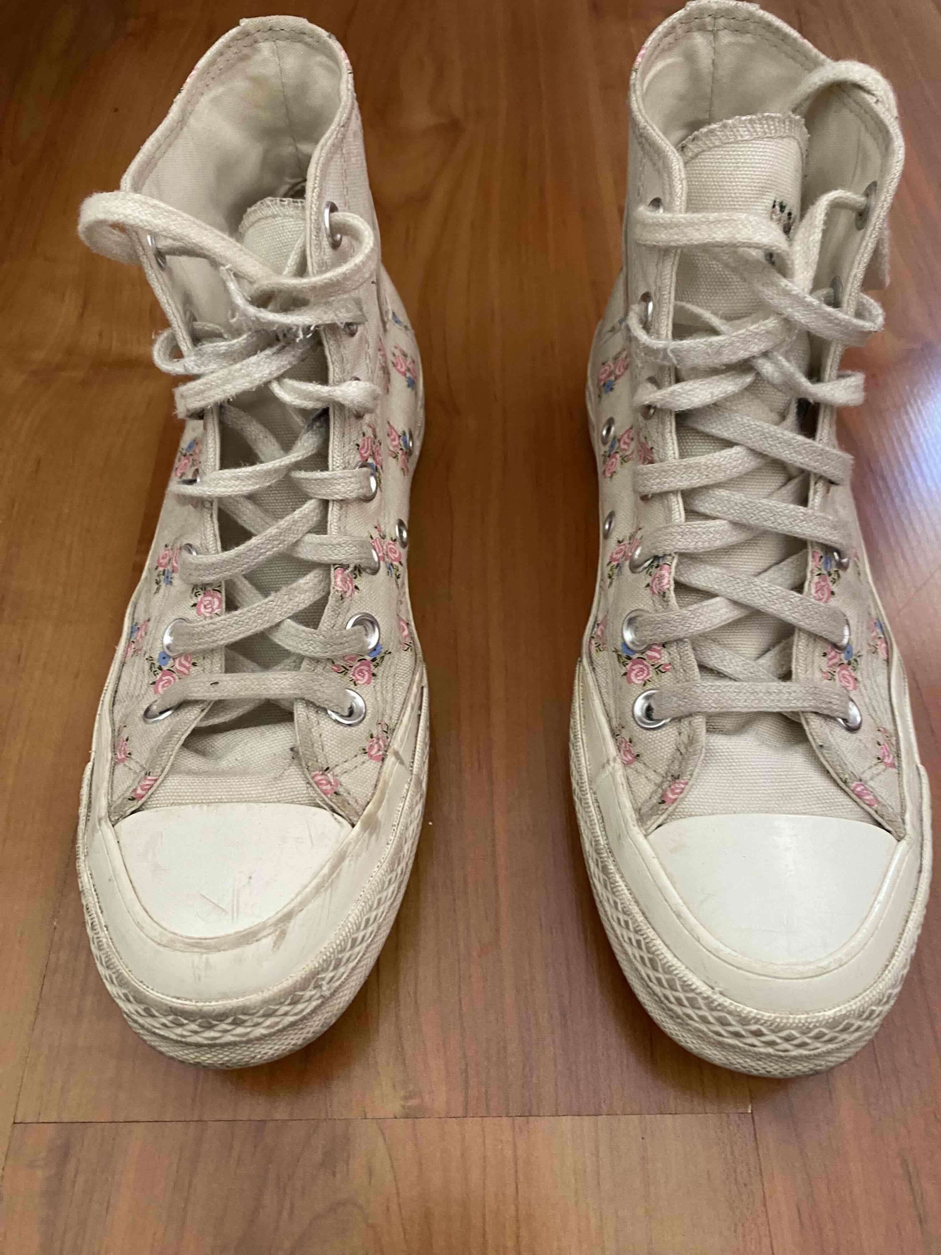 zapatillas converse florales con uso pero cuidadas, las puedo limpiar bien antes. Precio original nuevas 70.000 pero como están usadas las vendo a 30.000
