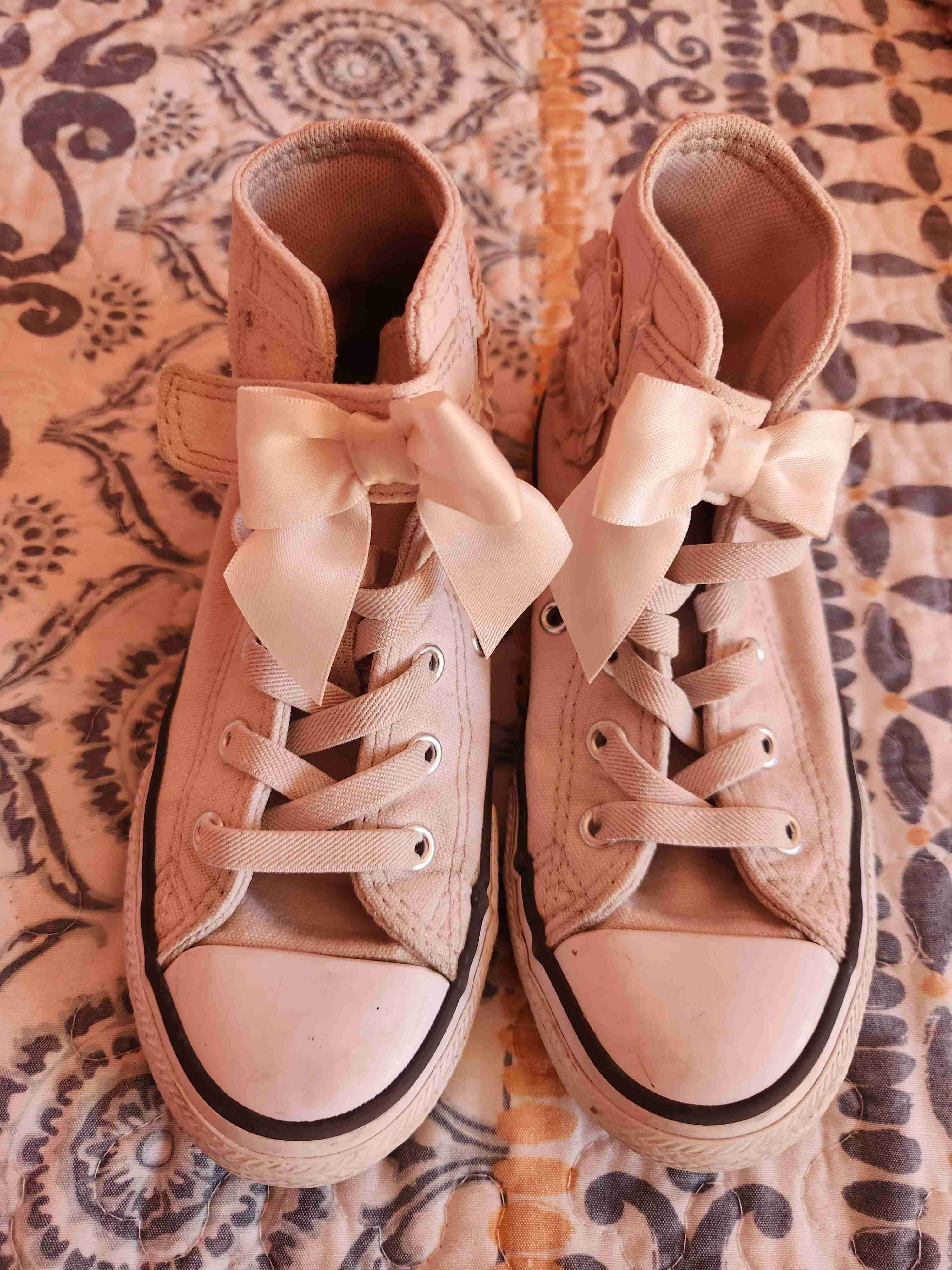 Zapatillas altas de tela en color rosa con detalles de lazo. Buen estado general, ideal para uso diario.