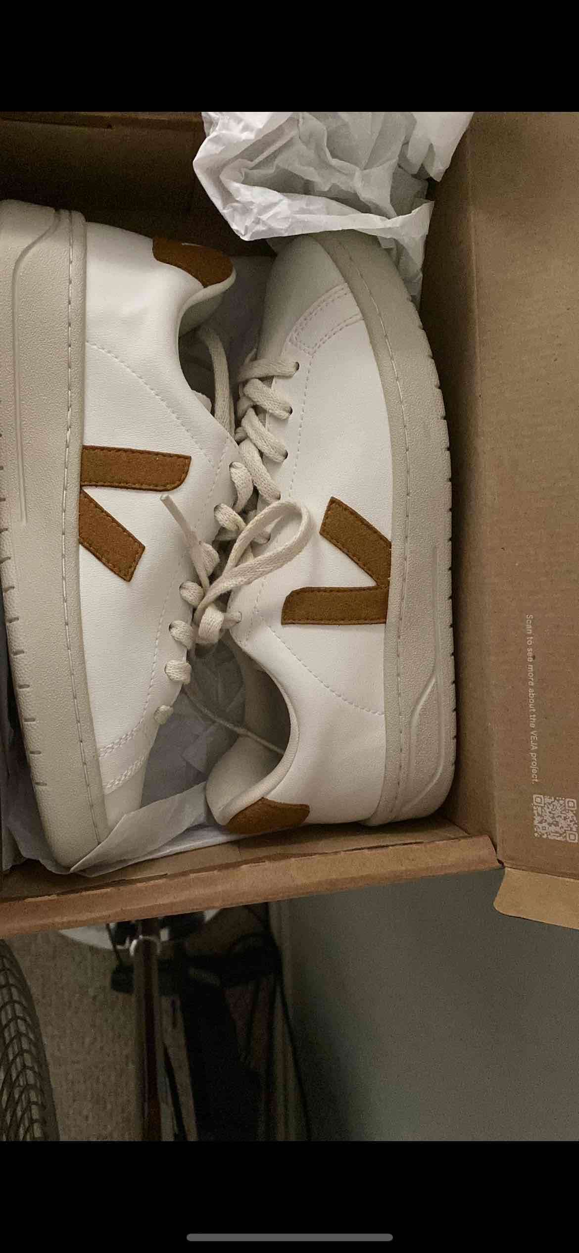 Zapatillas casuales blancas con toques de color café. Ideal para uso diario, en buen estado.marca Veja núm 38 modelo horma normal Precio referencia 150 mil